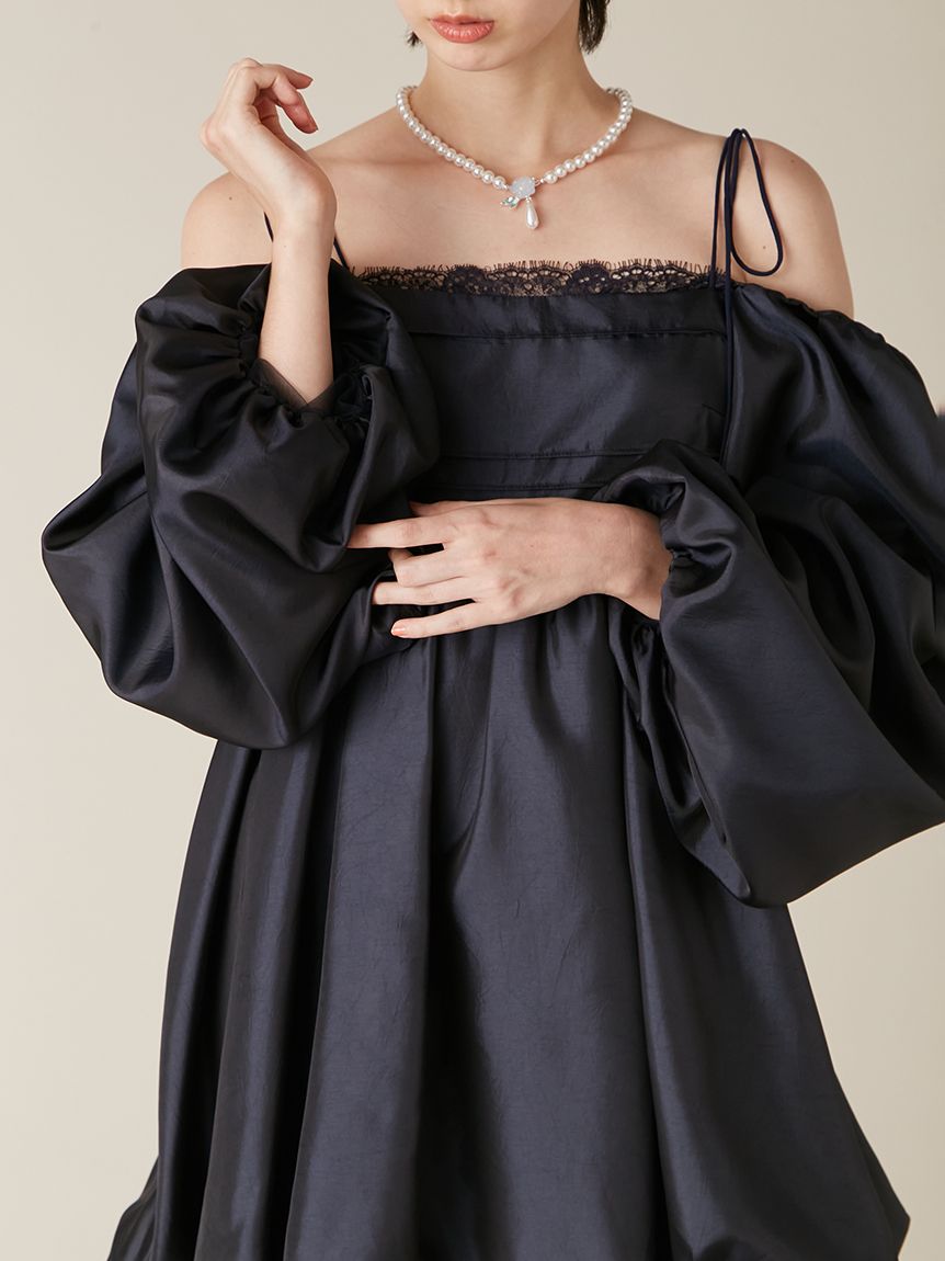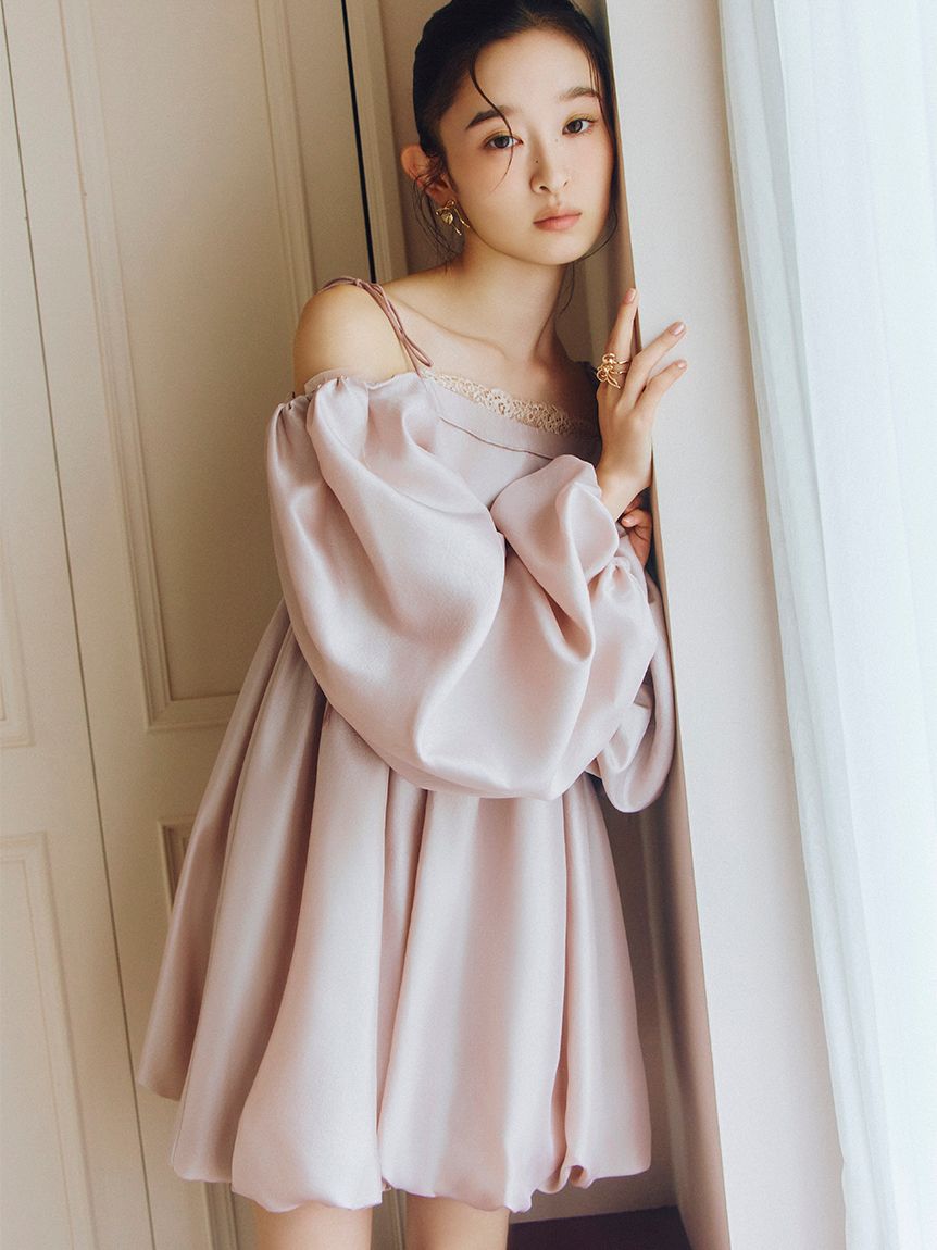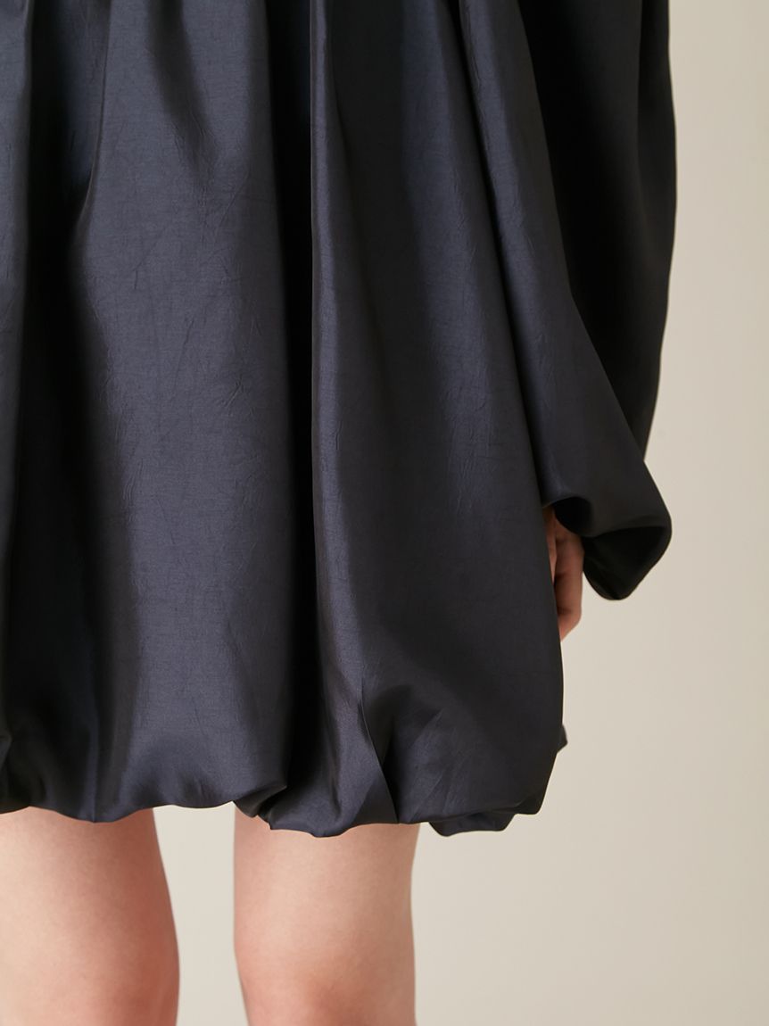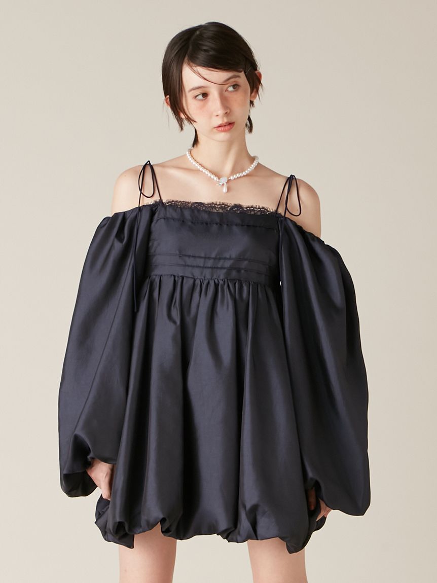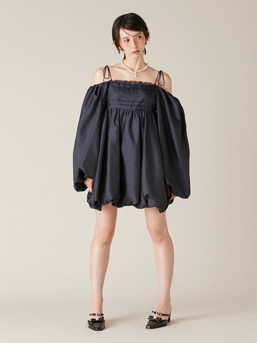 融合摩登氛圍與細膩甜美感的迷你洋裝。採用帶有復古加工的斜紋布材質,呈現自然光澤與挺度,營造出優雅且具存在感的輪廓。腰間點綴份量感十足的蝴蝶結,增添柔和氣息。亦可將袖子微微下拉,打造一字領露肩穿法,展現更鮮明的時尚氛圍。