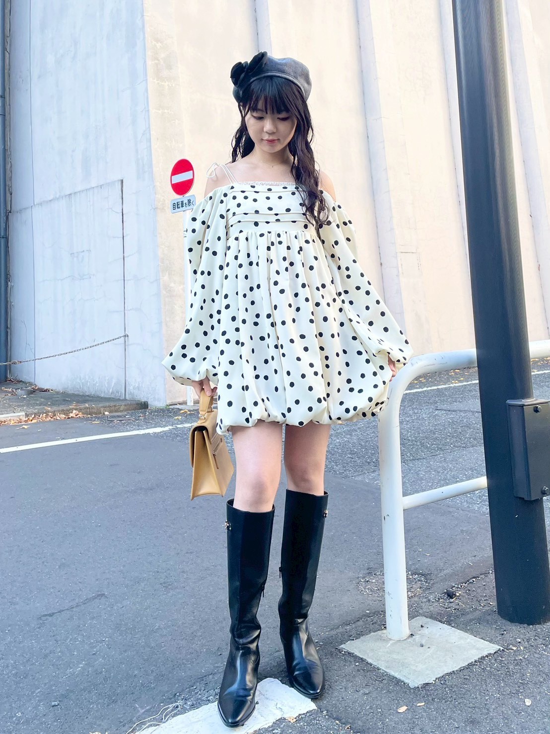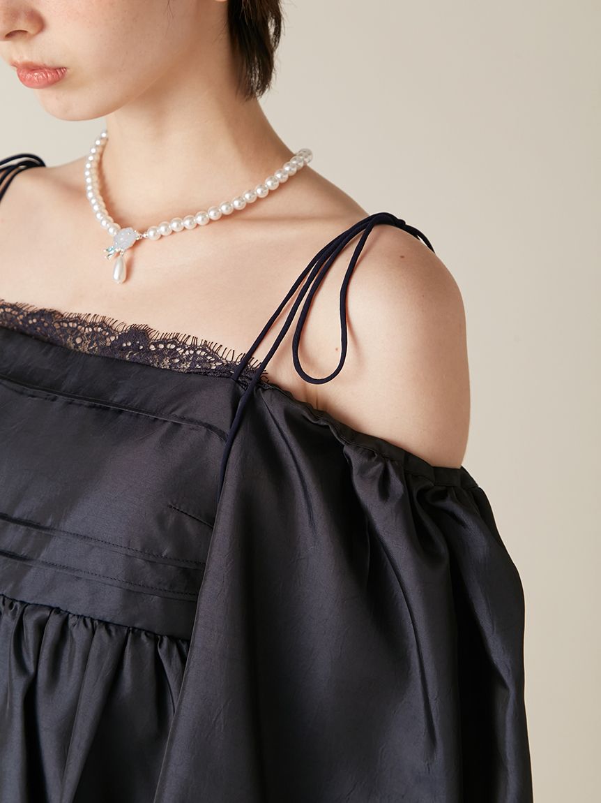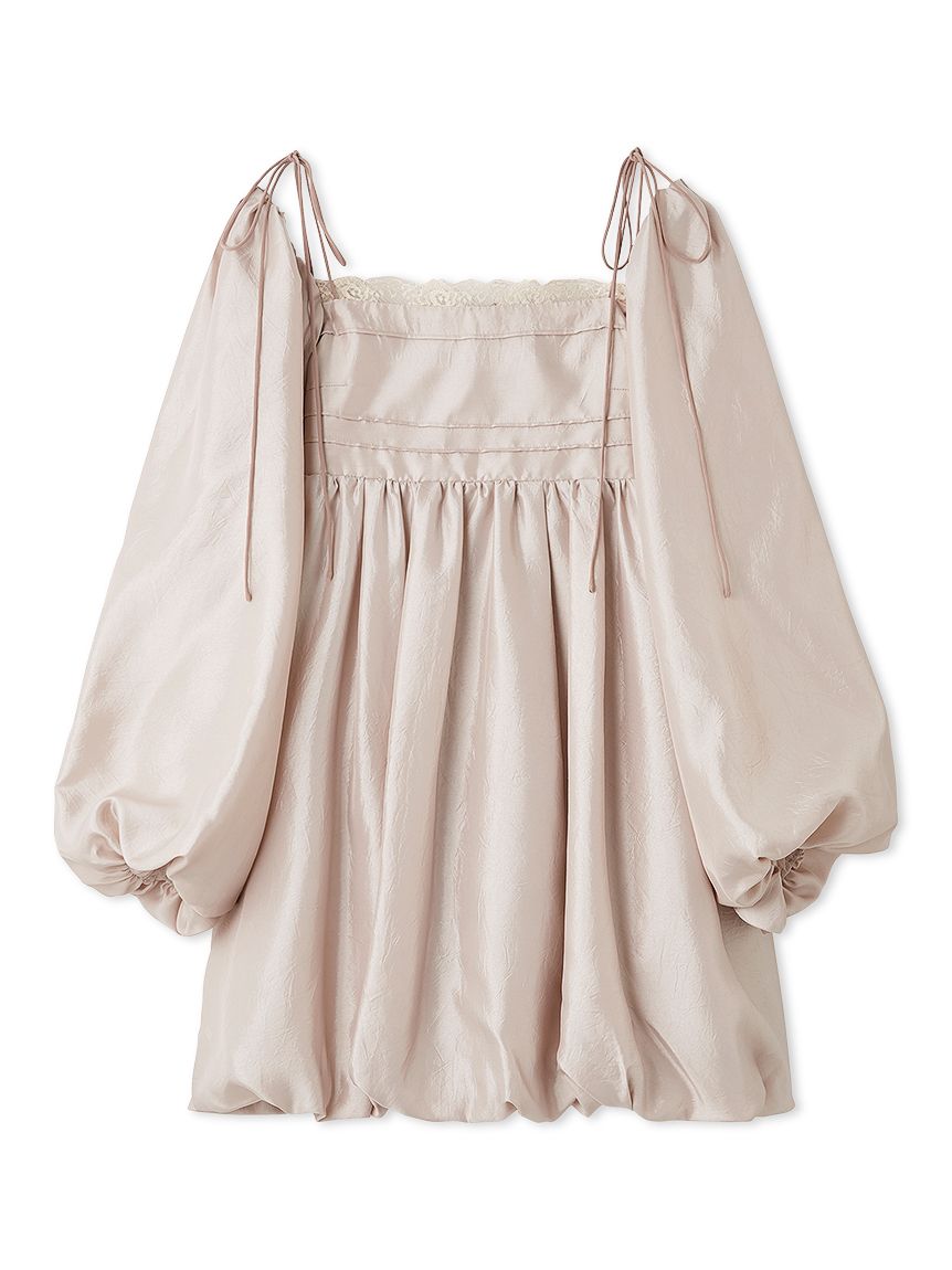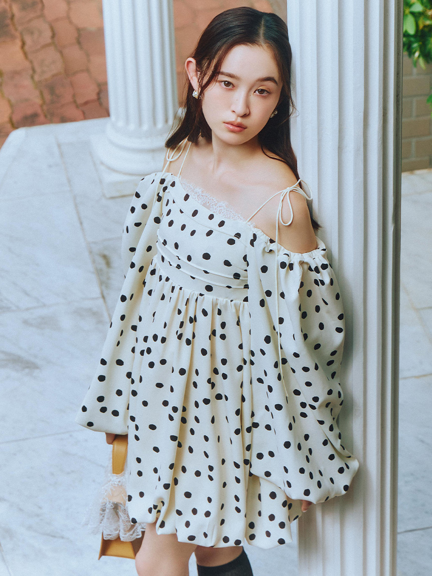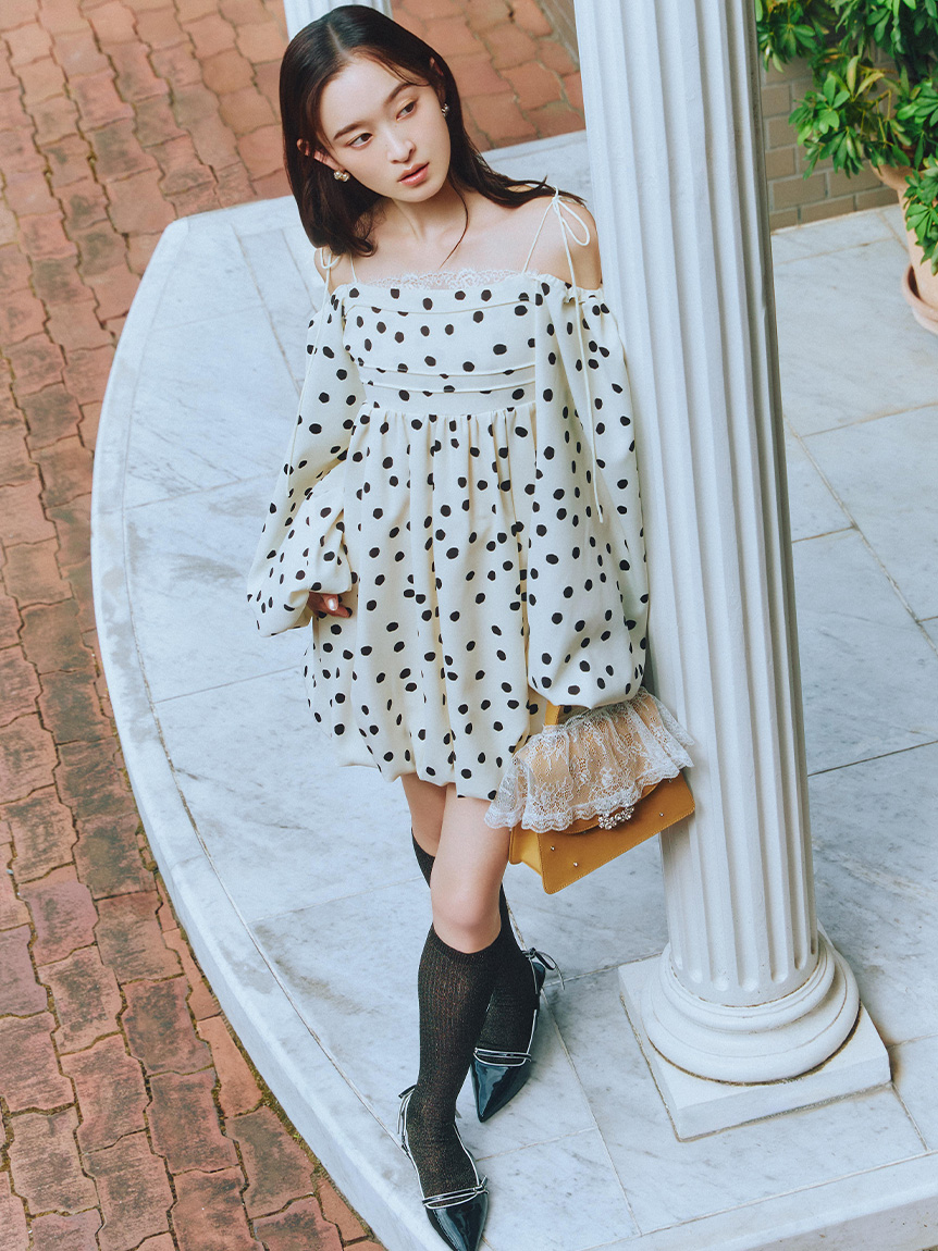 融合摩登氛圍與細膩甜美感的迷你洋裝。採用帶有復古加工的斜紋布材質,呈現自然光澤與挺度,營造出優雅且具存在感的輪廓。腰間點綴份量感十足的蝴蝶結,增添柔和氣息。亦可將袖子微微下拉,打造一字領露肩穿法,展現更鮮明的時尚氛圍。