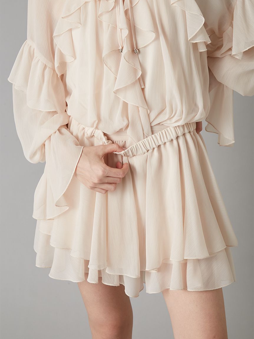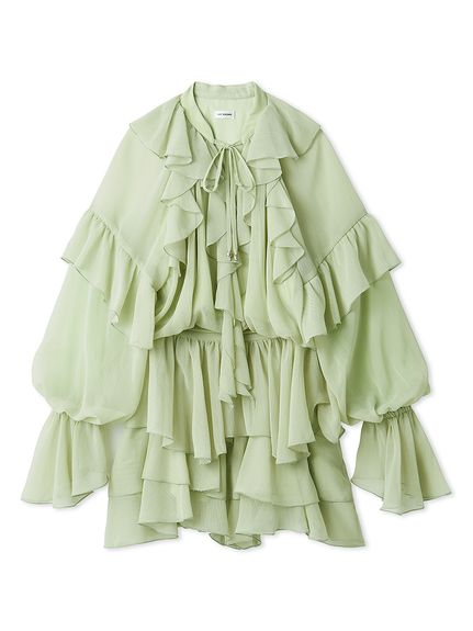 上衣採大量喇叭剪裁設計,氣球袖自然蓬鬆,呈現可愛俏皮輪廓。