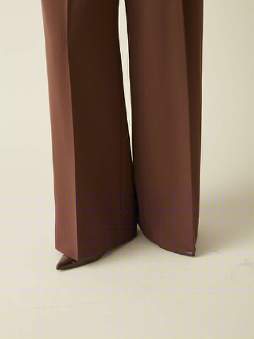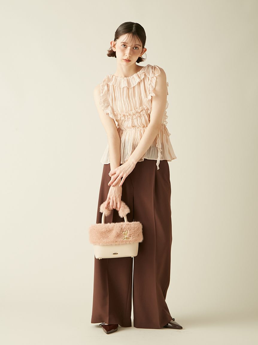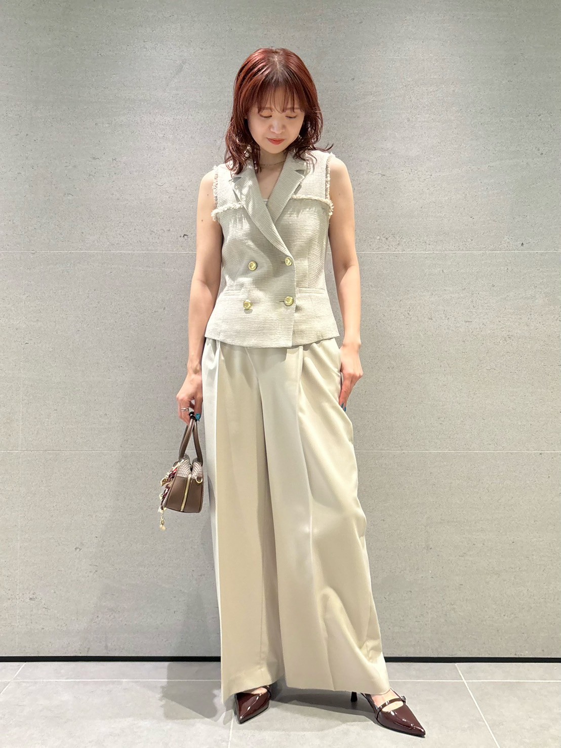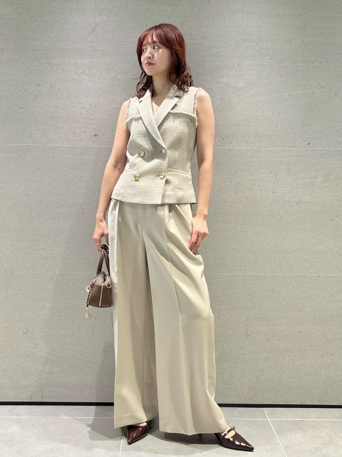 「LILY BROWN」推出的塔克寬褲,以俐落修長的寬版剪裁展現優雅氣場。不對稱腰頭結合隱約點綴的裝飾釦,為經典版型注入本季的摩登元素。