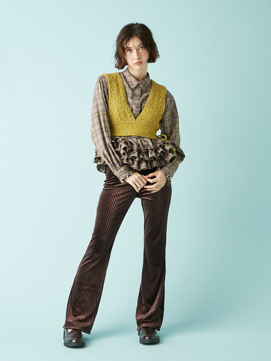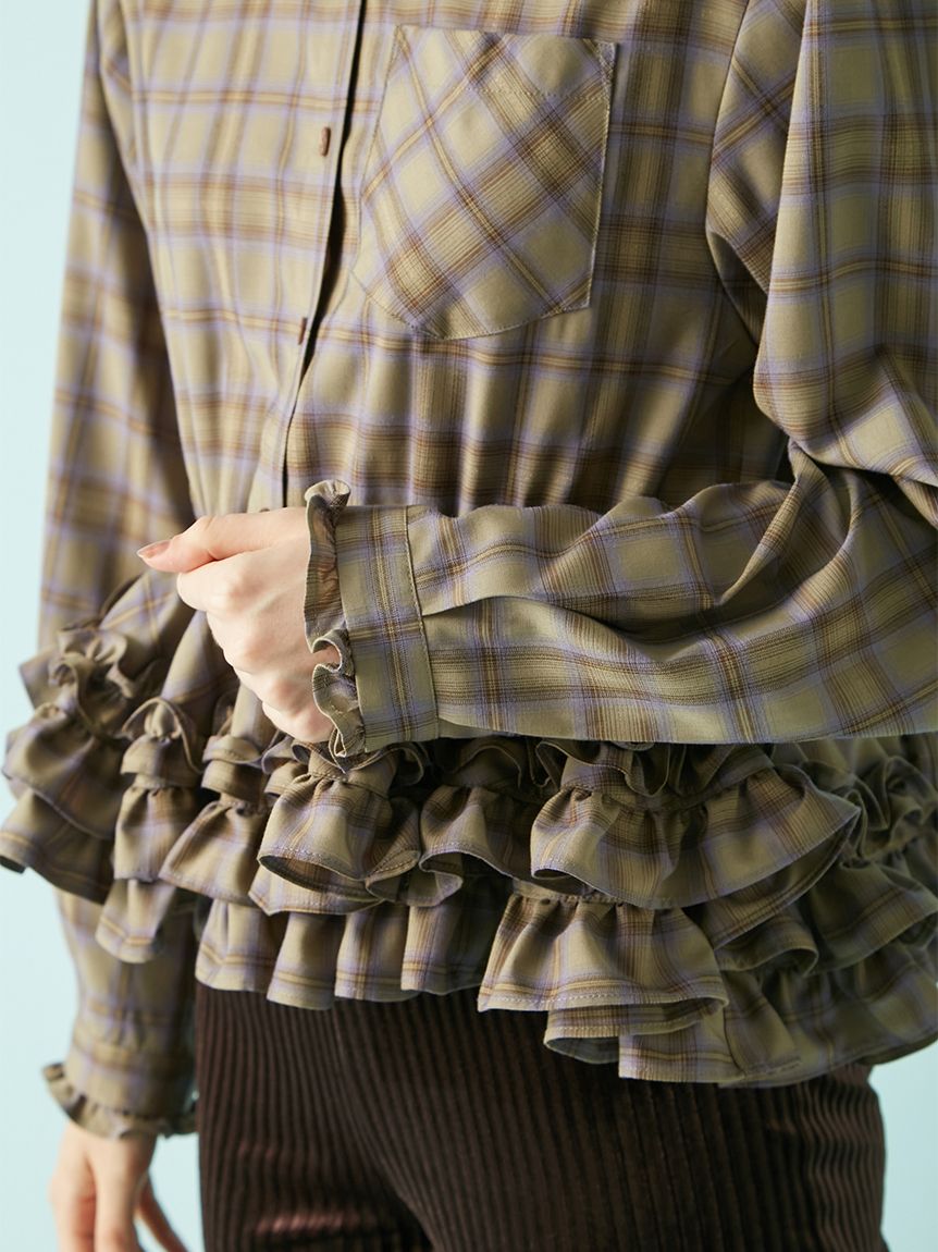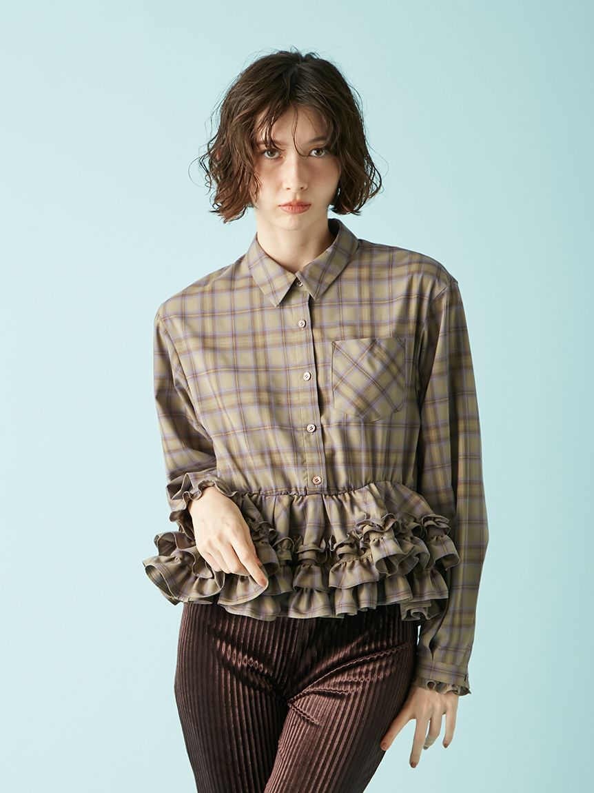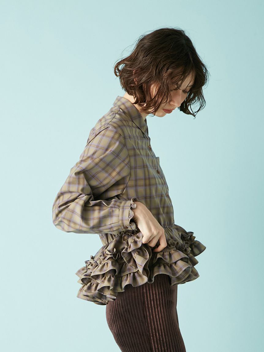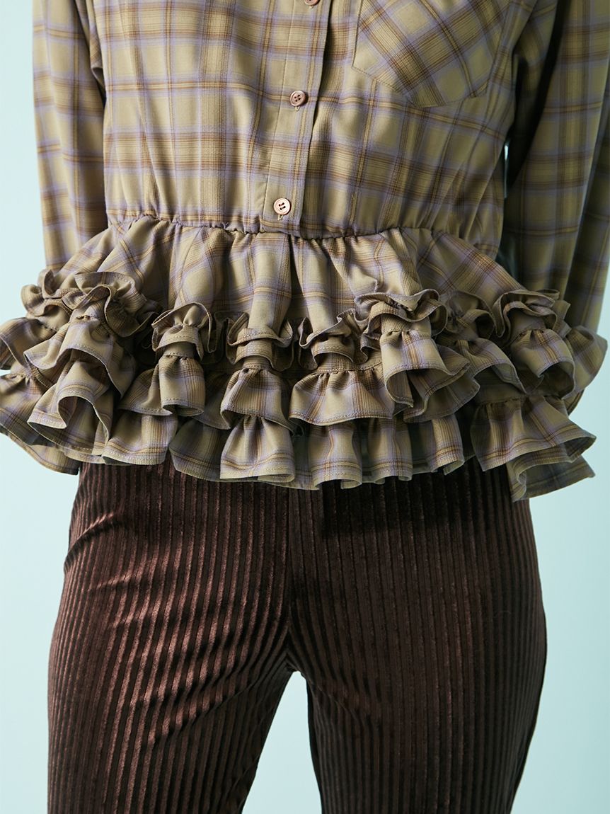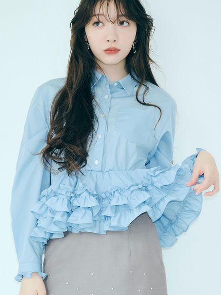 使用帶有適度挺度的襯衫布料,使荷葉邊更具立體感。輕盈舒適的觸感,兼具華麗感與日常穿搭的實用性。