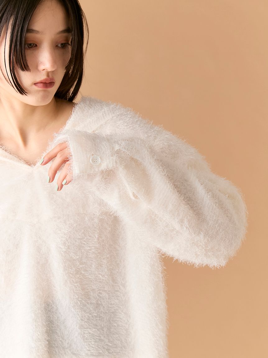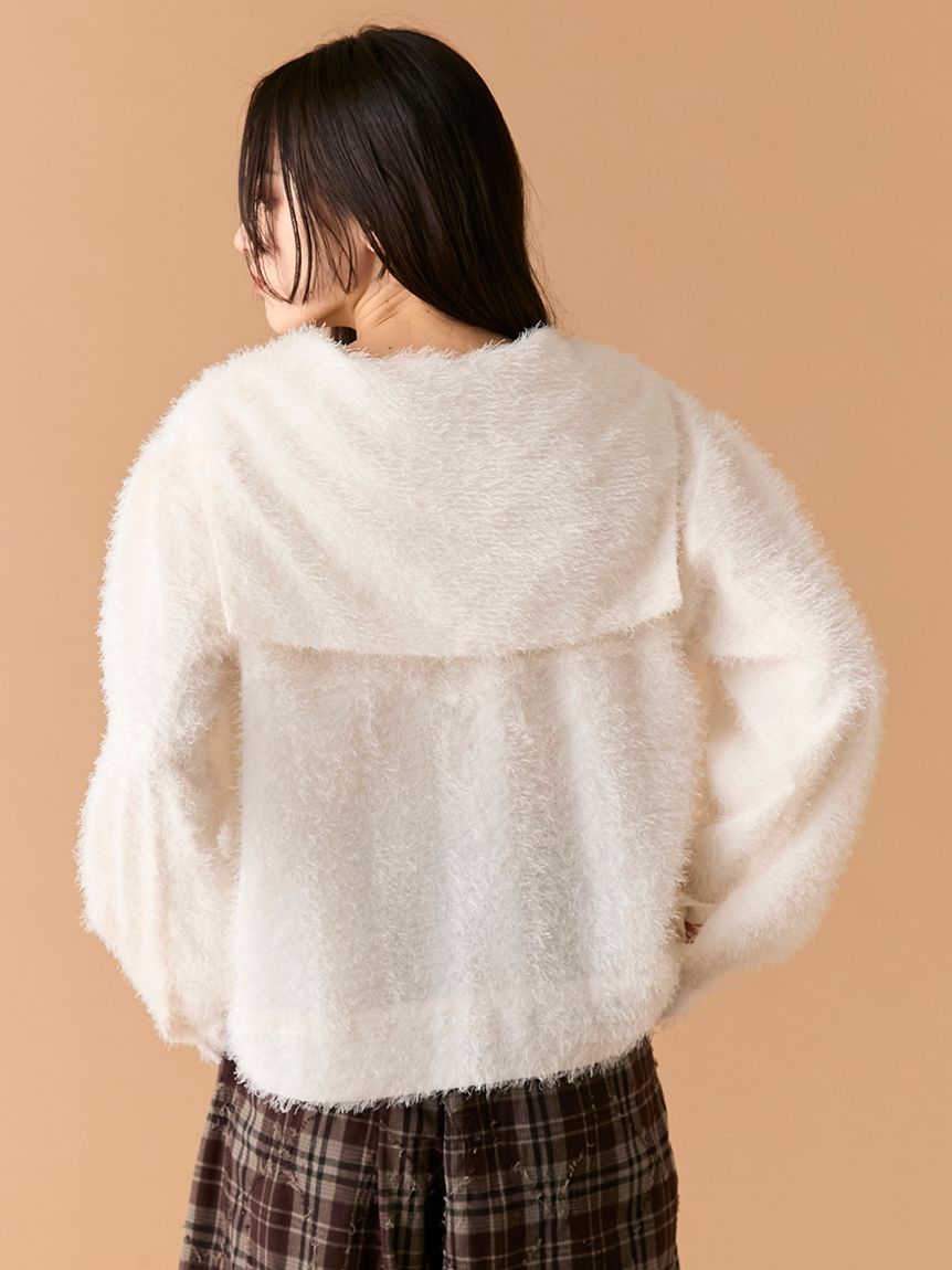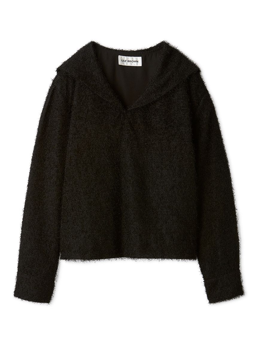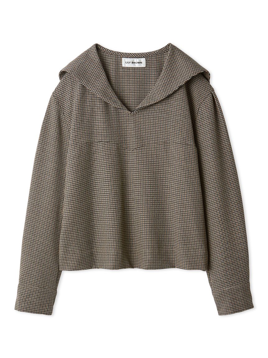 寬鬆領口與水手領設計,營造出成熟復古氛圍的上衣。衣身採用適度寬鬆的方正剪裁,既能展現休閒感又能穿出時尚風格。