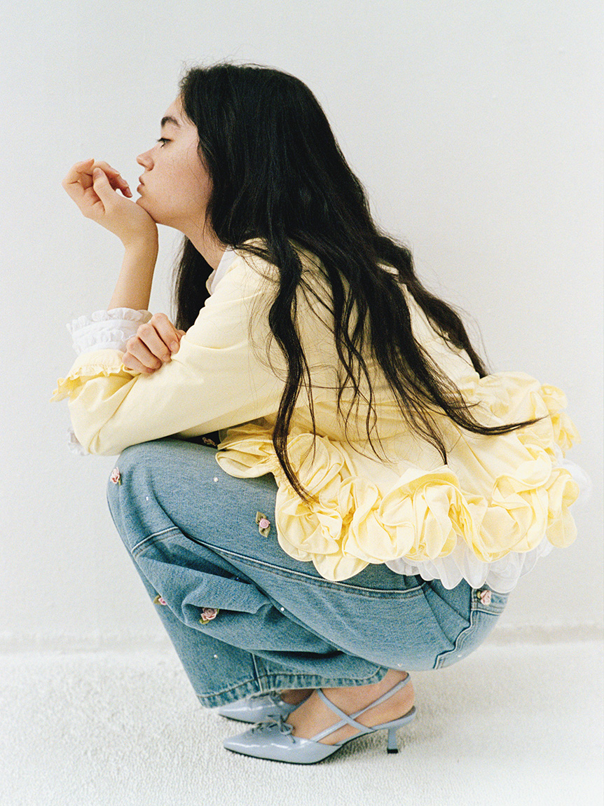 採用輕盈質感的材質,兼顧荷葉邊的立體美感與舒適的穿著體驗。