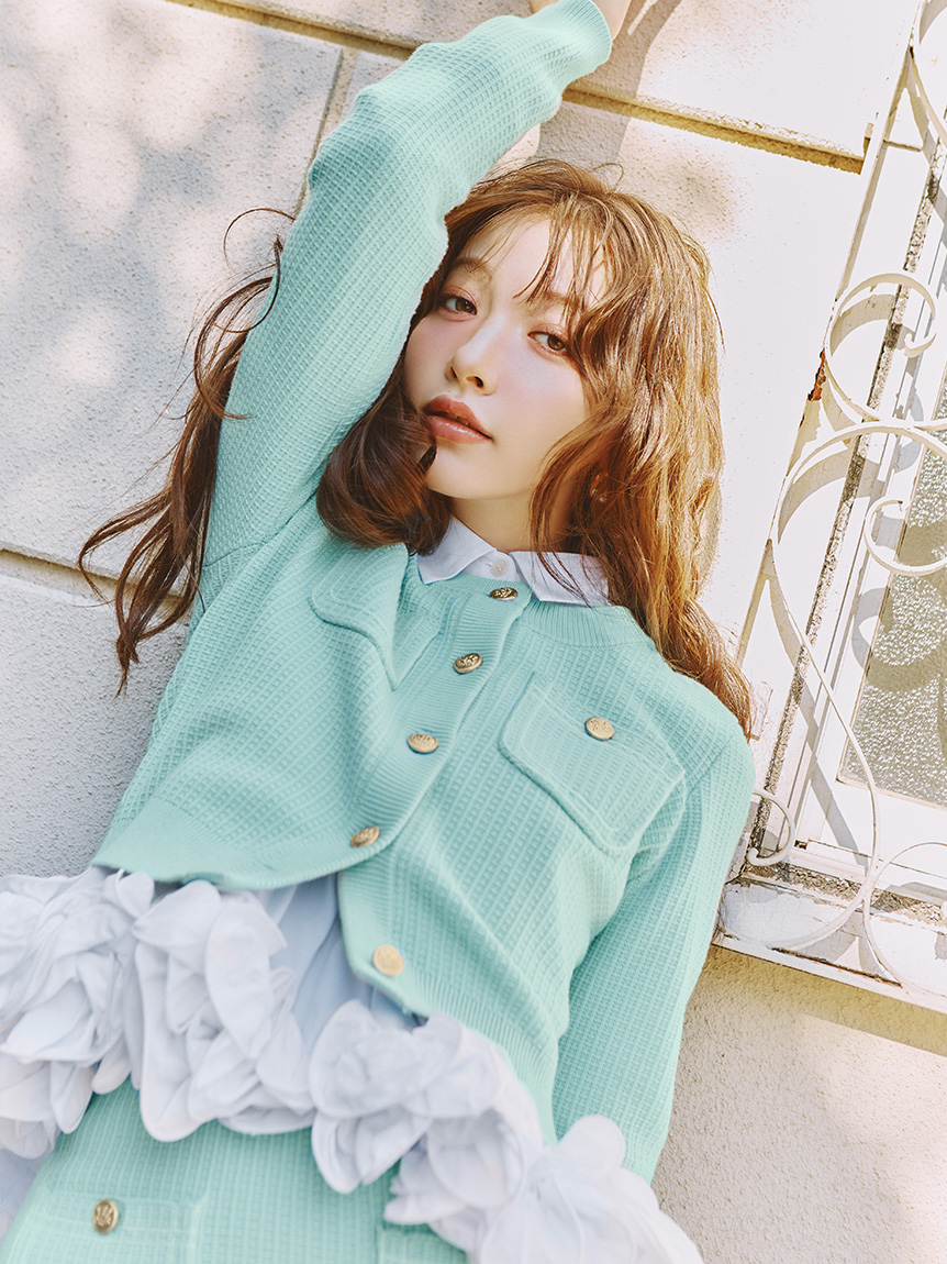 袖口袖釦處夾入迷你荷葉邊設計,從細節展現柔美氛圍。