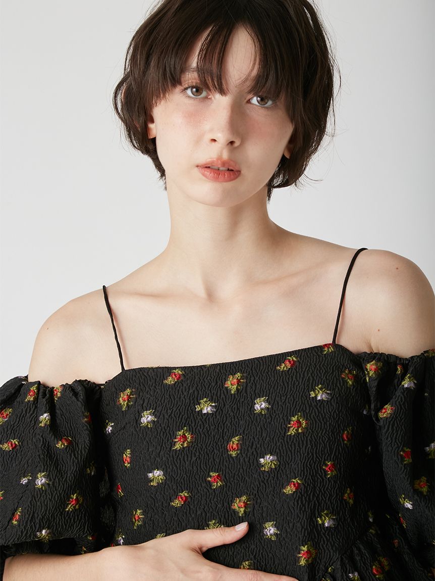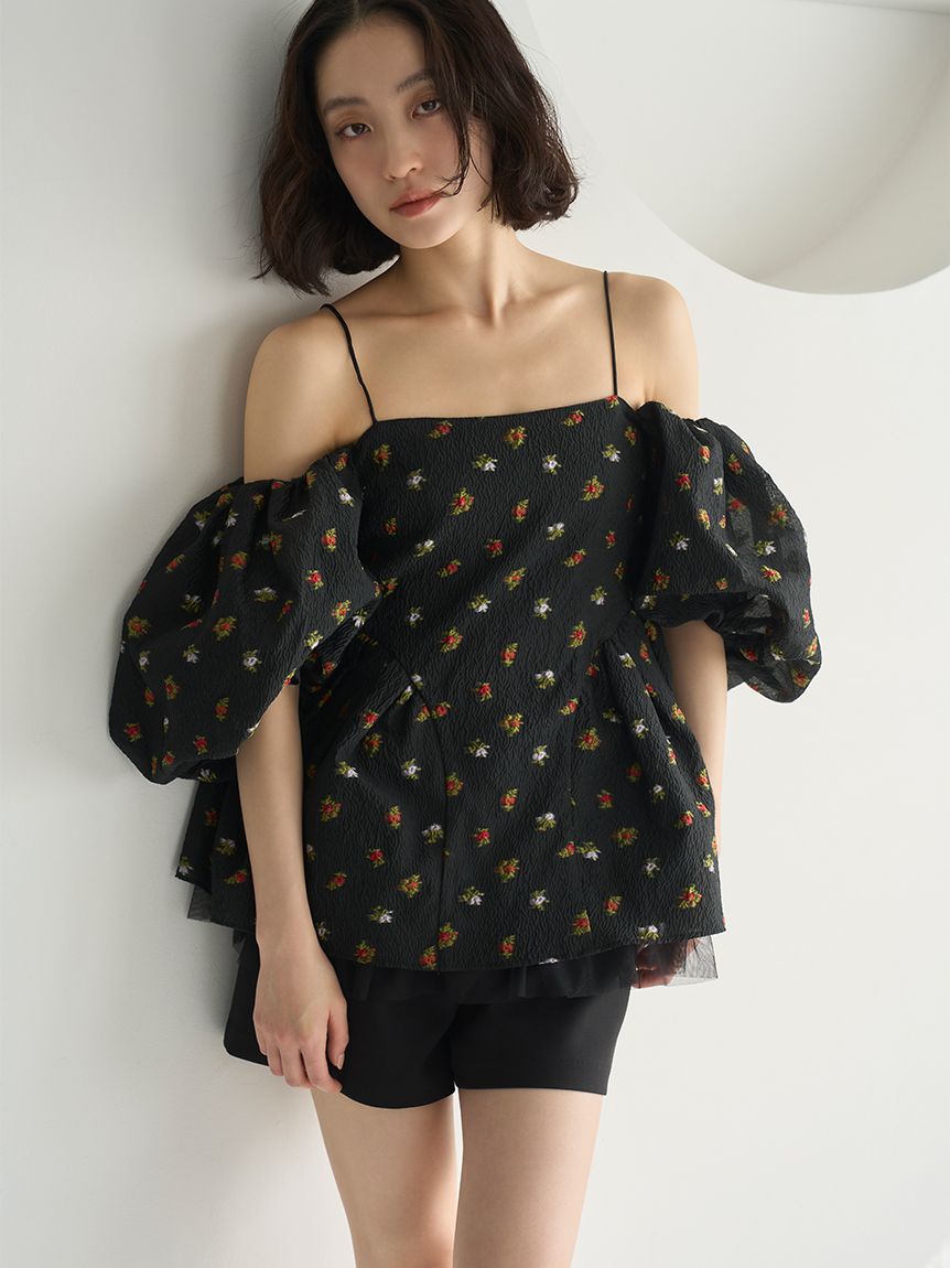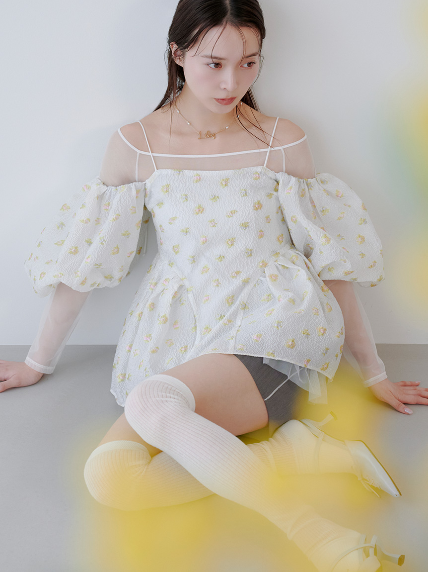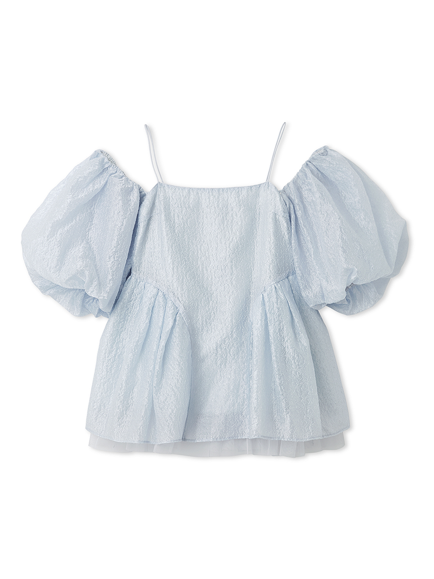 附蝴蝶結可透過鈕扣輕鬆拆卸,並可變化為澎袖、平口或細肩帶的3WAY穿法。