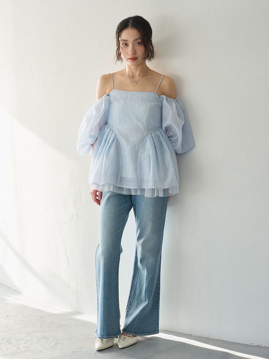 【輕盈薄紗飄逸的3WAY荷葉邊馬甲上衣】