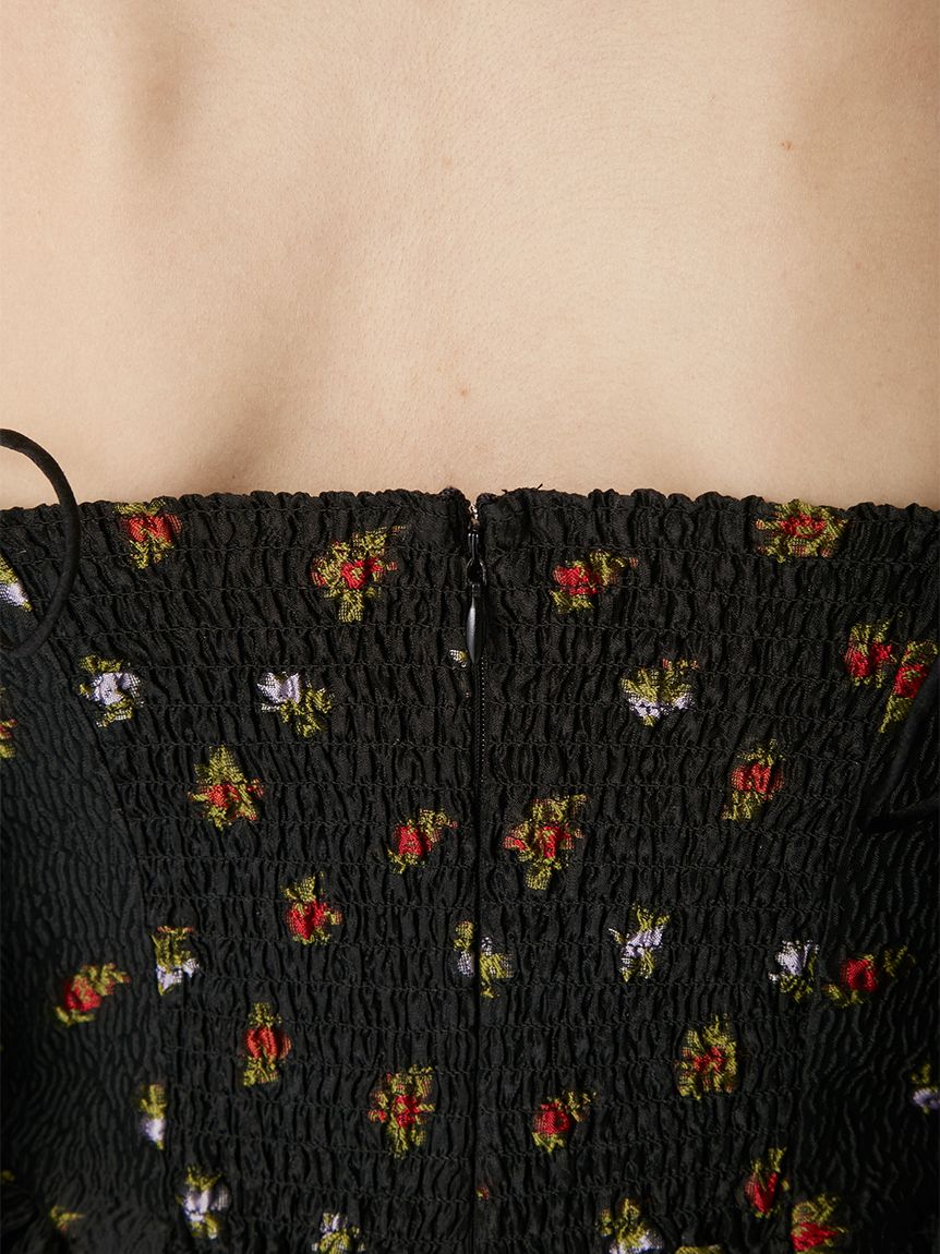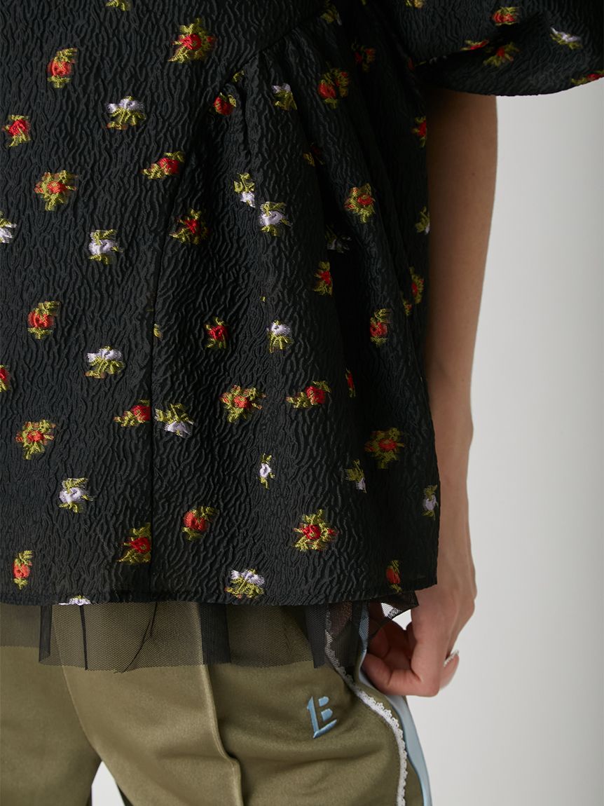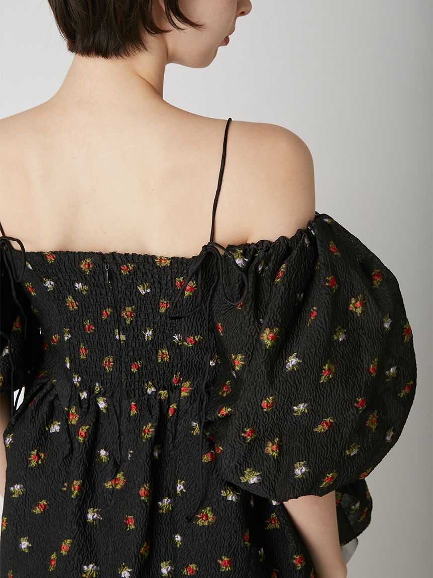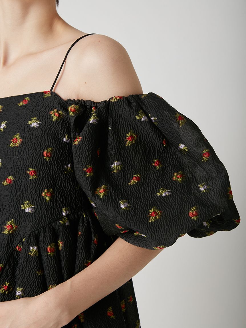 結合輕盈薄紗與滑順表布,完整呈現荷葉邊的蓬鬆感。