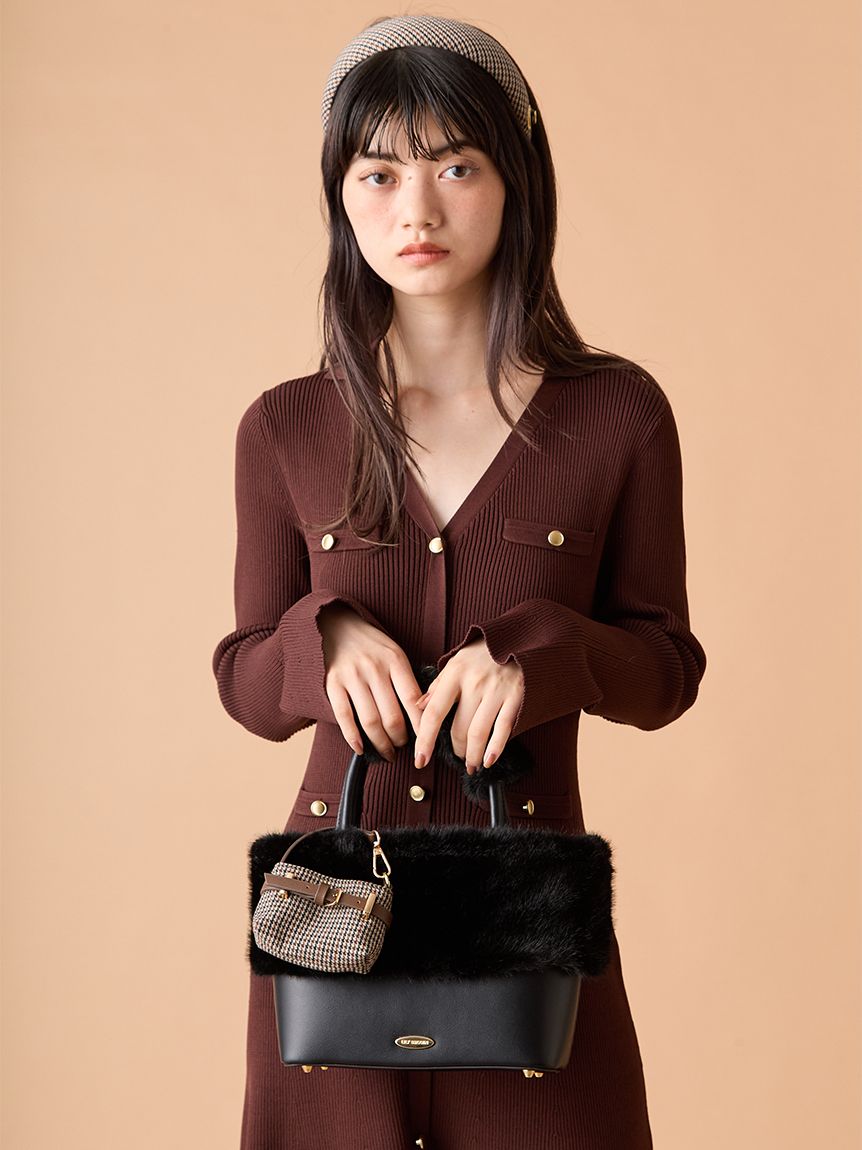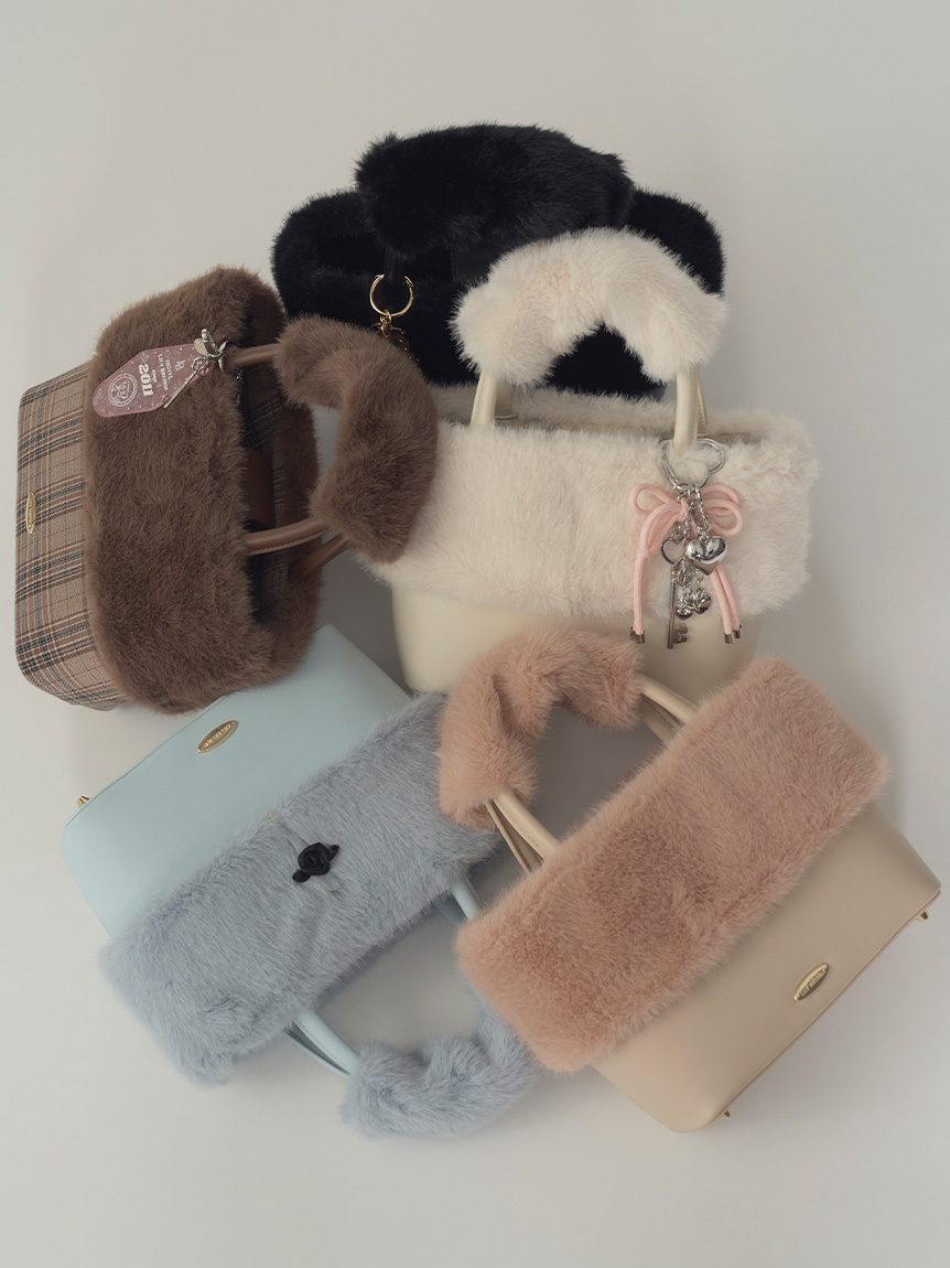 去年廣受好評的毛絨混搭包,今年以混搭不同材質的方式進行升級。附有肩帶,可手提或肩背使用。開口處新增拉環設計,既能防止內容物外露,也能避免物品掉落,打造出令人安心的設計。