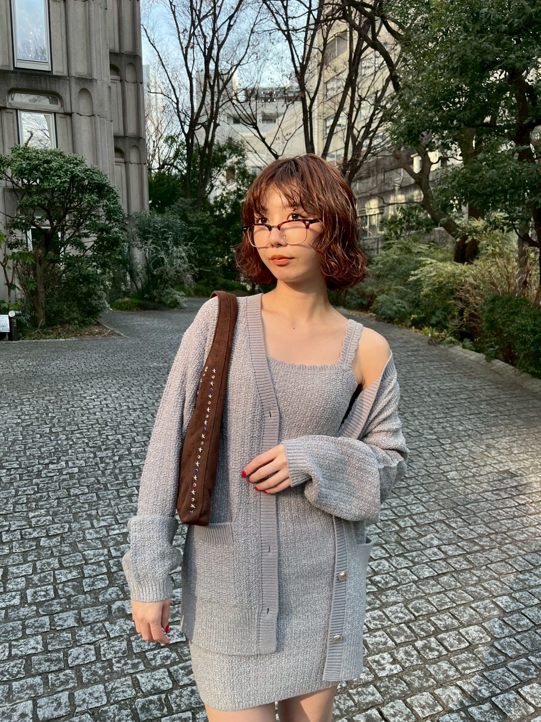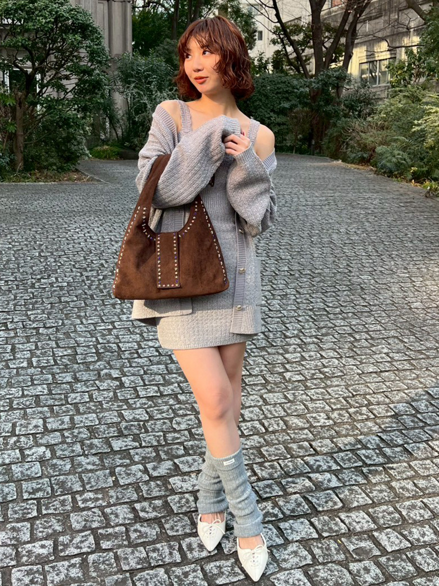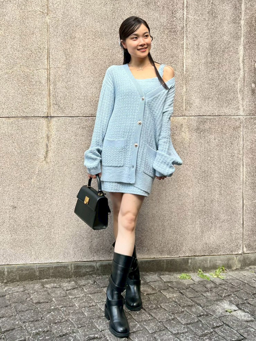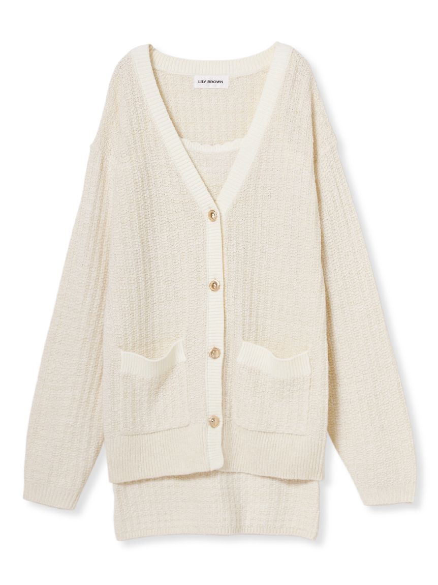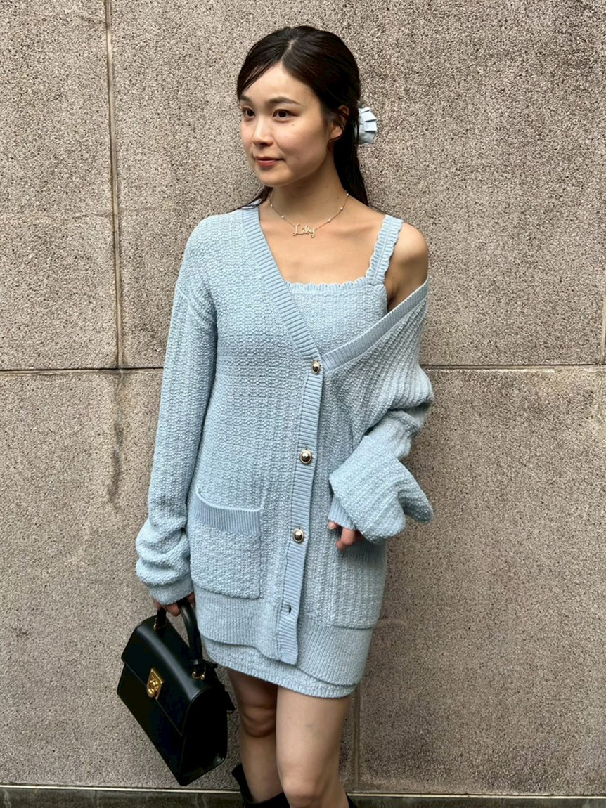 吊帶洋裝與開襟針織外套組合而成的一件洋裝。