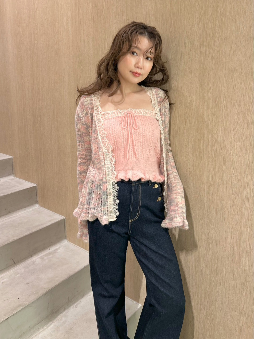 | 素材 | : | 【開襟衫】 [WHT?GRY]主體:尼龍47%、壓克力纖維40%、羊毛9%、羊駝毛4% [PNK]主體:壓克力纖維46%、尼龍39%、羊毛10%、馬海毛5% 蕾絲緞帶:尼龍100% 【內襯】主體:尼龍49%、壓克力纖維37%、羊毛8%、羊駝毛4%、聚氨酯2%/蕾絲緞帶:尼龍100% |