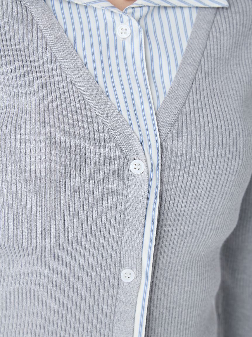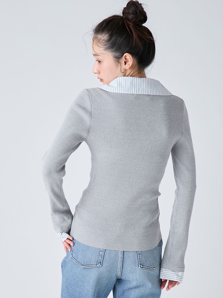 拼接襯衫的針織衫設計,營造層次感和視覺焦點。