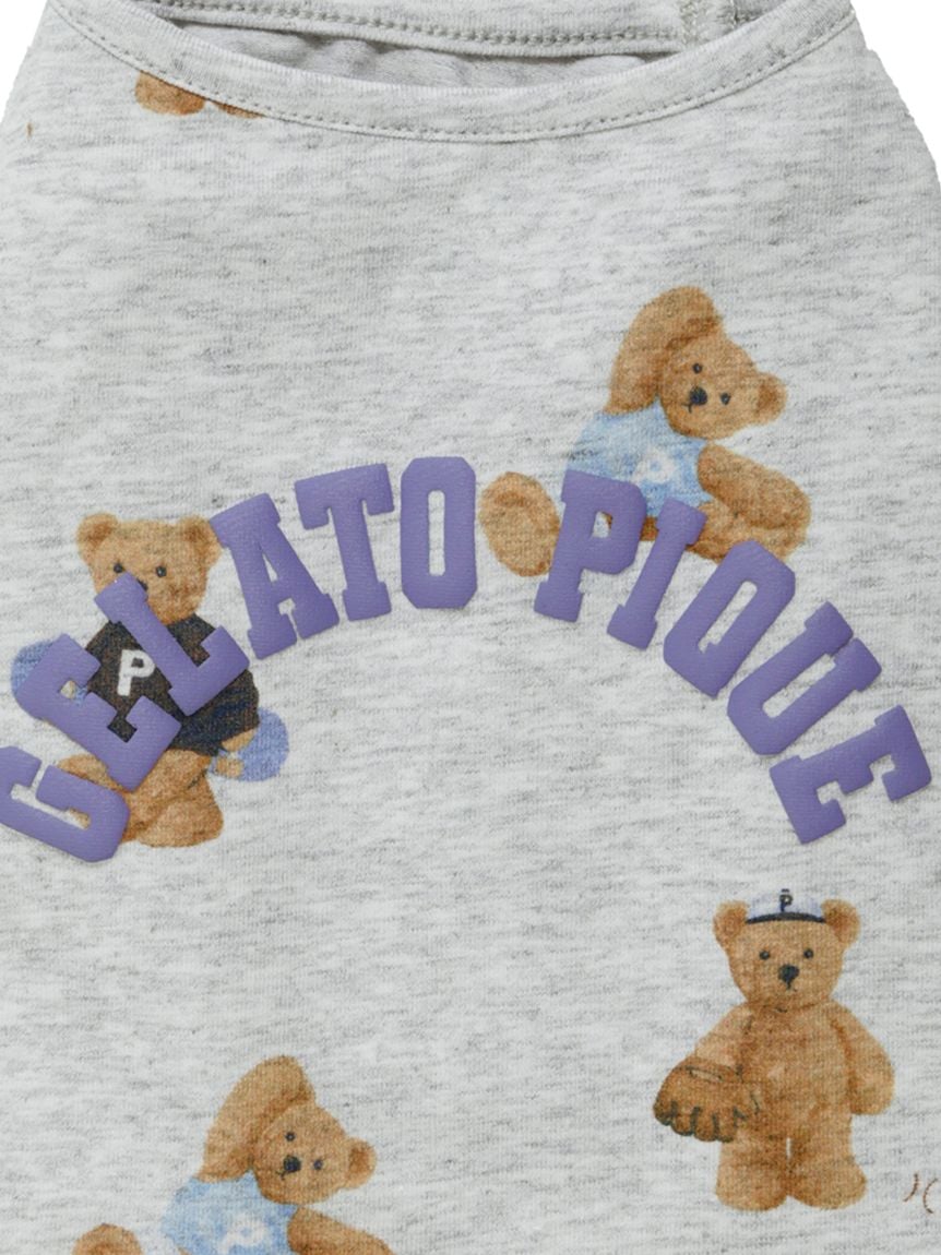 使用柔軟輕盈的全年適穿小熊針織布,印有三種運動圖案的小熊全身印花,搭配立體發泡印刷的拱形品牌 LOGO,趣味十足。