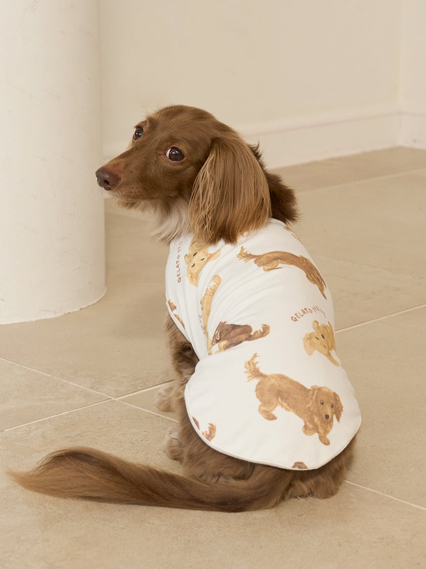 【充滿嬌感的臘腸犬印花棉質上衣】