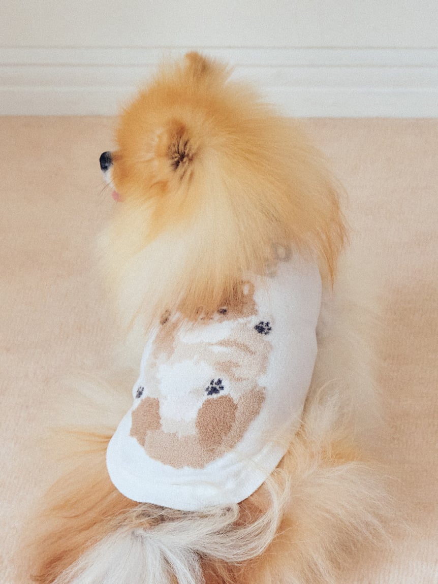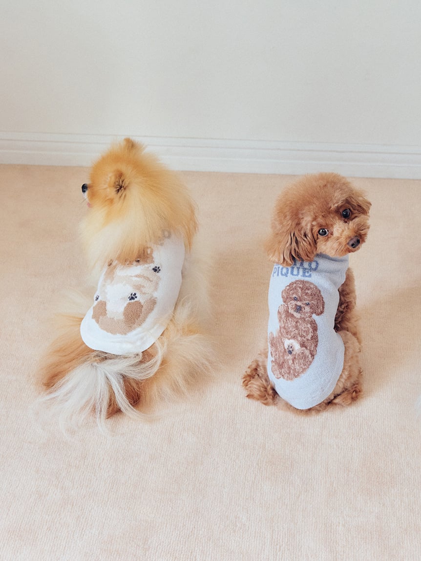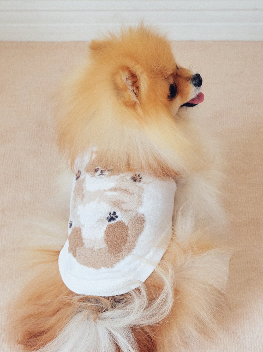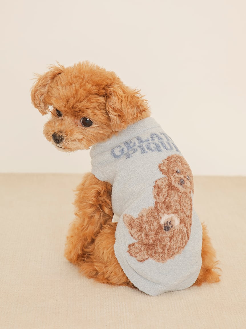以人氣犬種為靈感,設計出可與飼主居家服搭配的針織上衣。