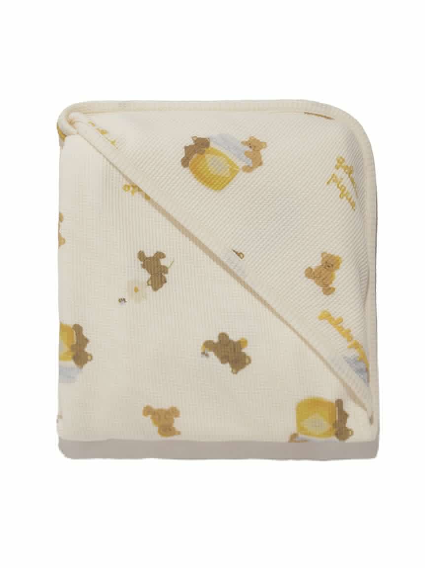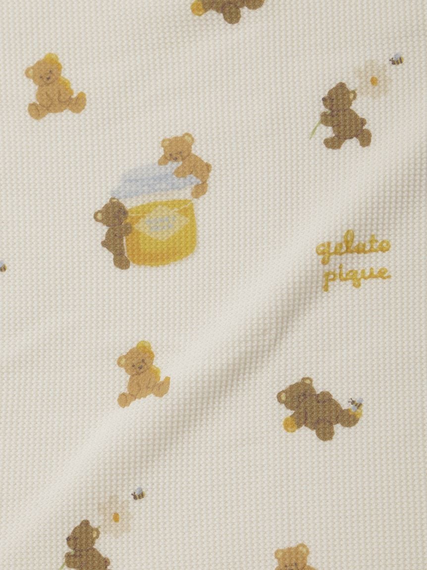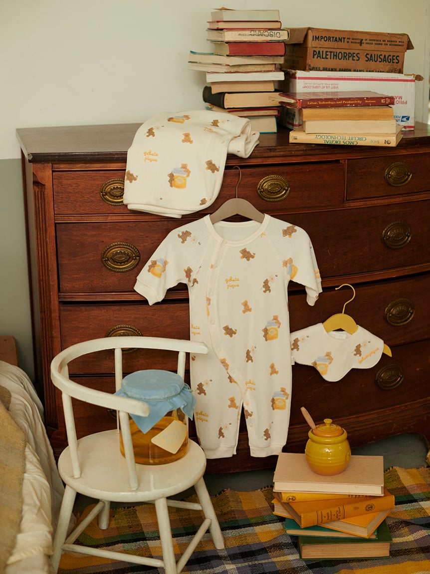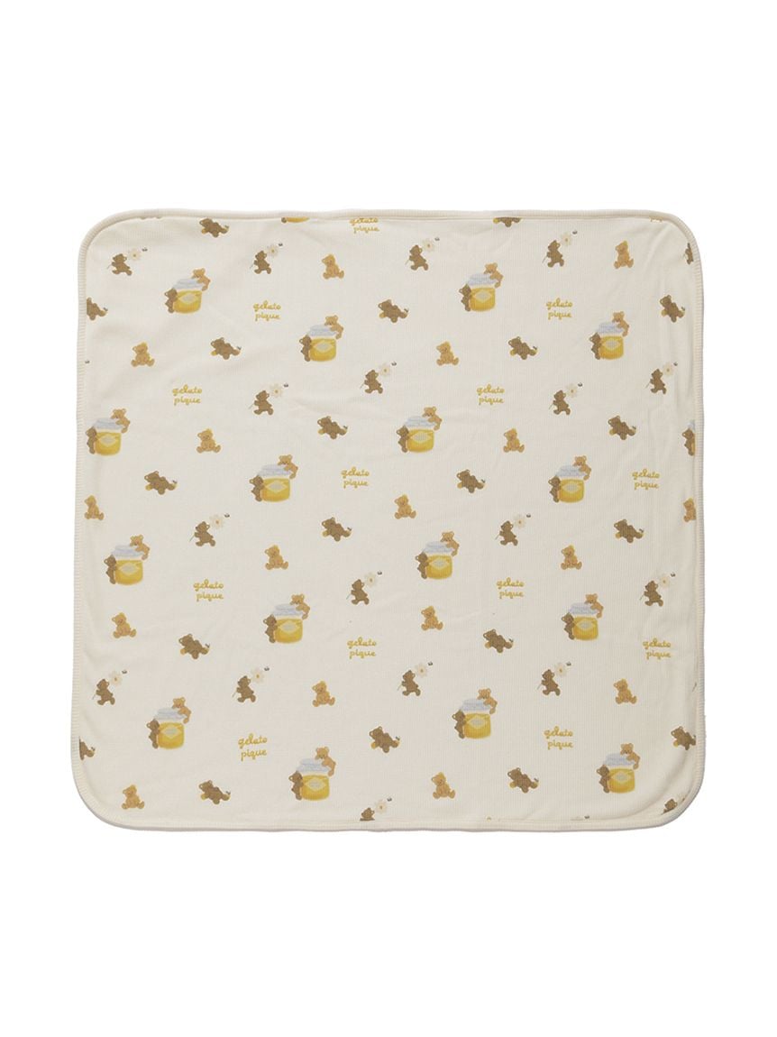 蜂蜜小熊BABY雜貨系列,以繪本風手法描繪可愛小熊與蜂蜜圖案。BABY小毯採用柔軟舒適的鬆餅布材質,印有小熊與蜂蜜的全版圖案,並點綴小巧的LOGO刺繡。色系以秋意溫暖的黃、棕色為主,搭配同系列服飾或小物,作為禮物也非常合適。