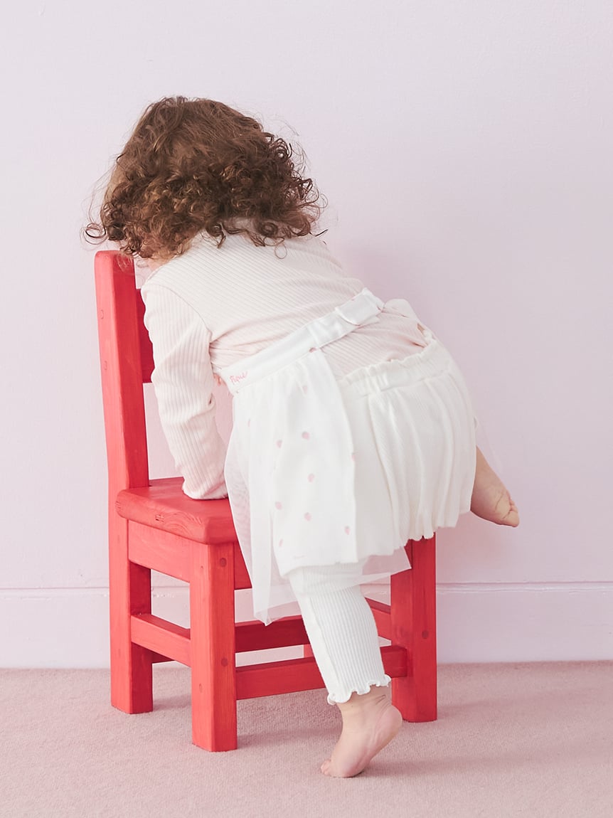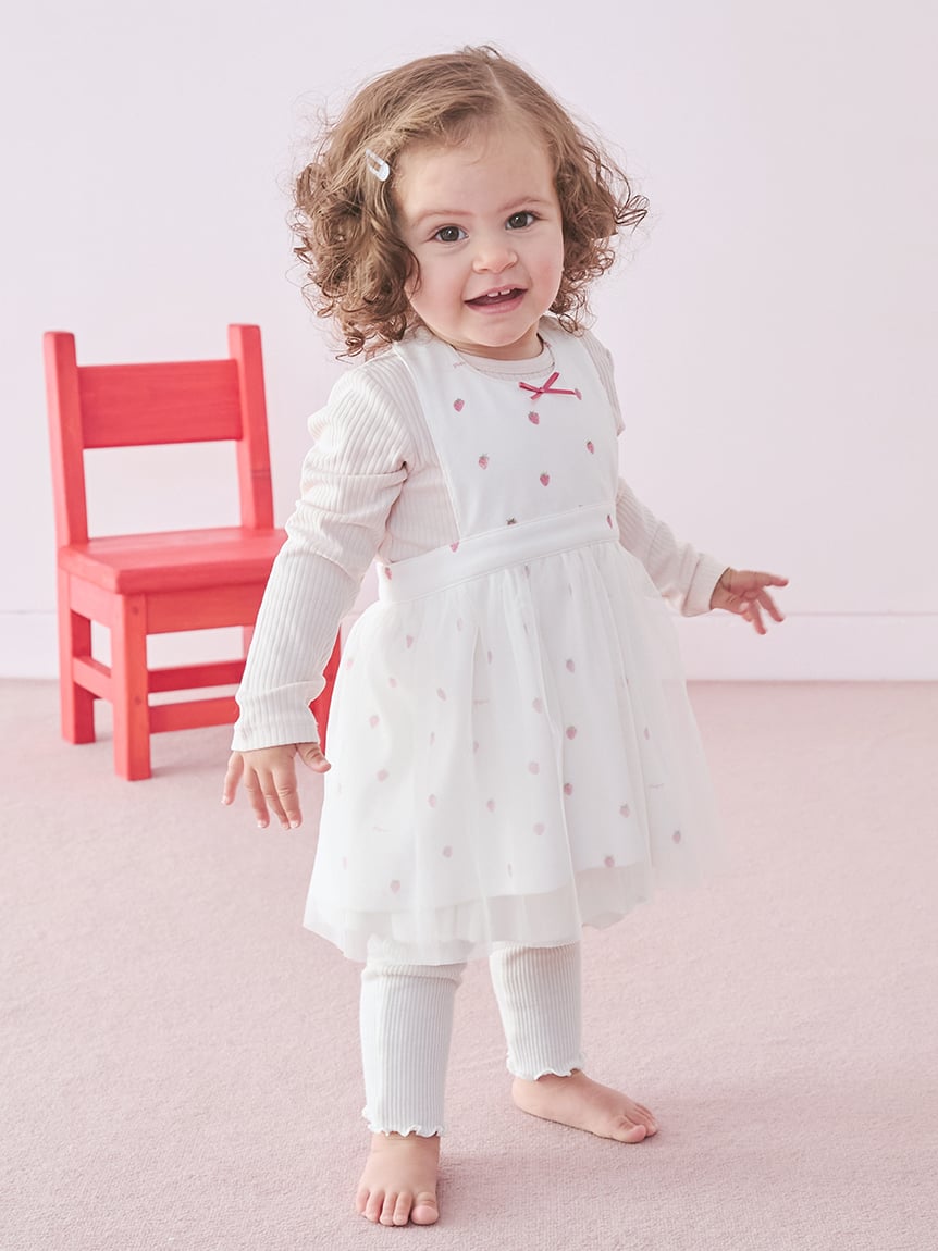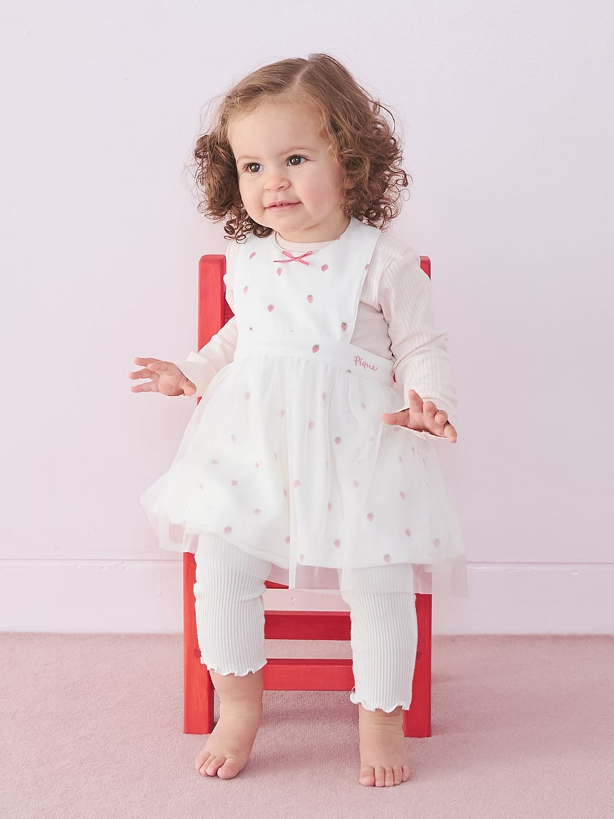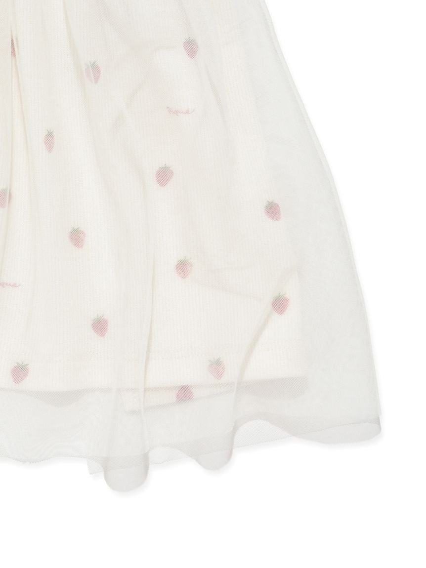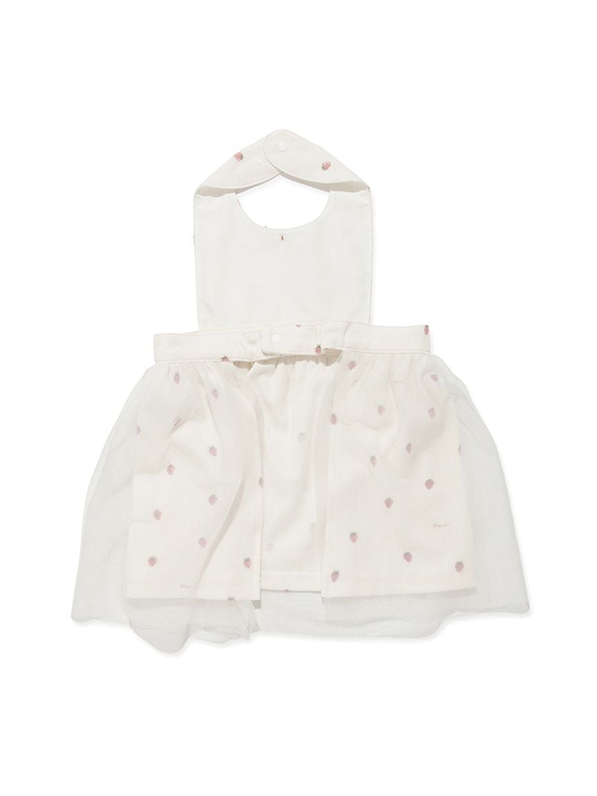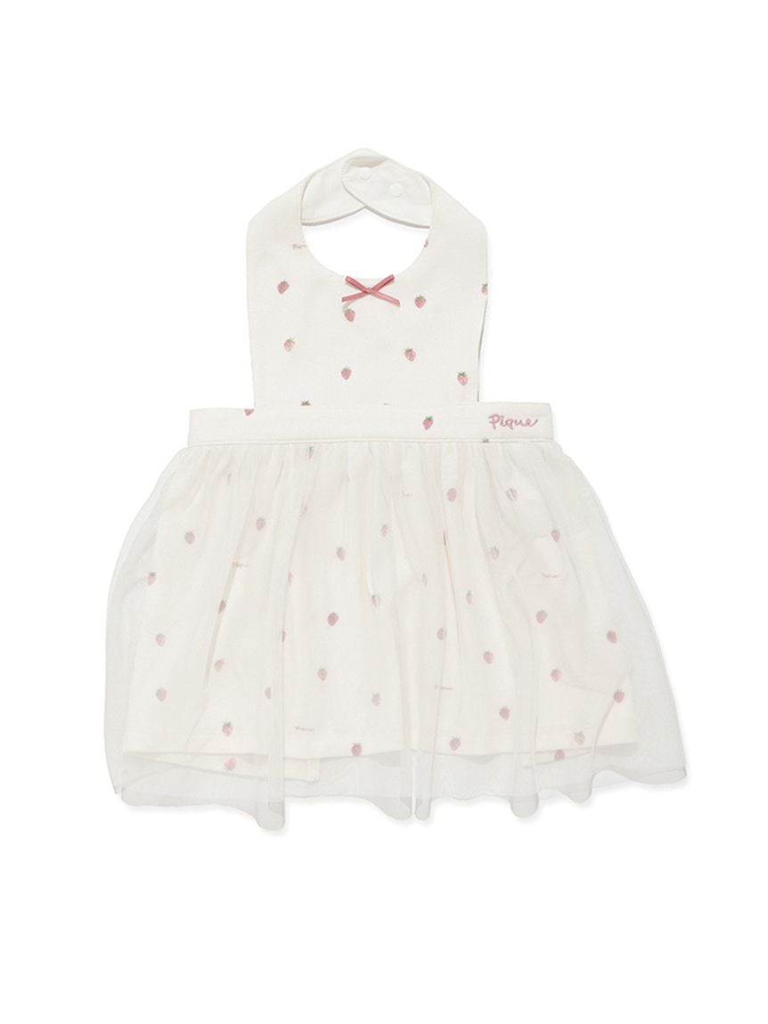 圍裙採用柔軟的棉質針織素材製作,疊加薄紗設計,穿起來宛如小洋裝般可愛。