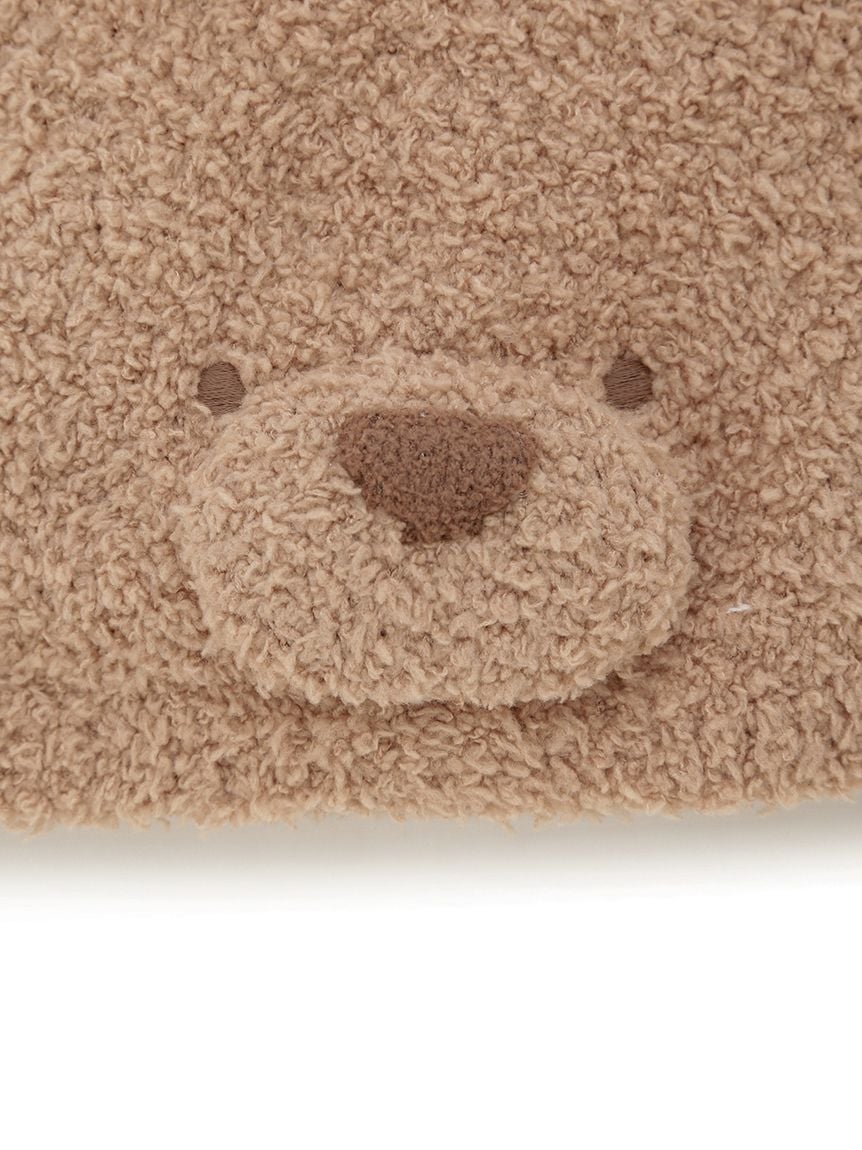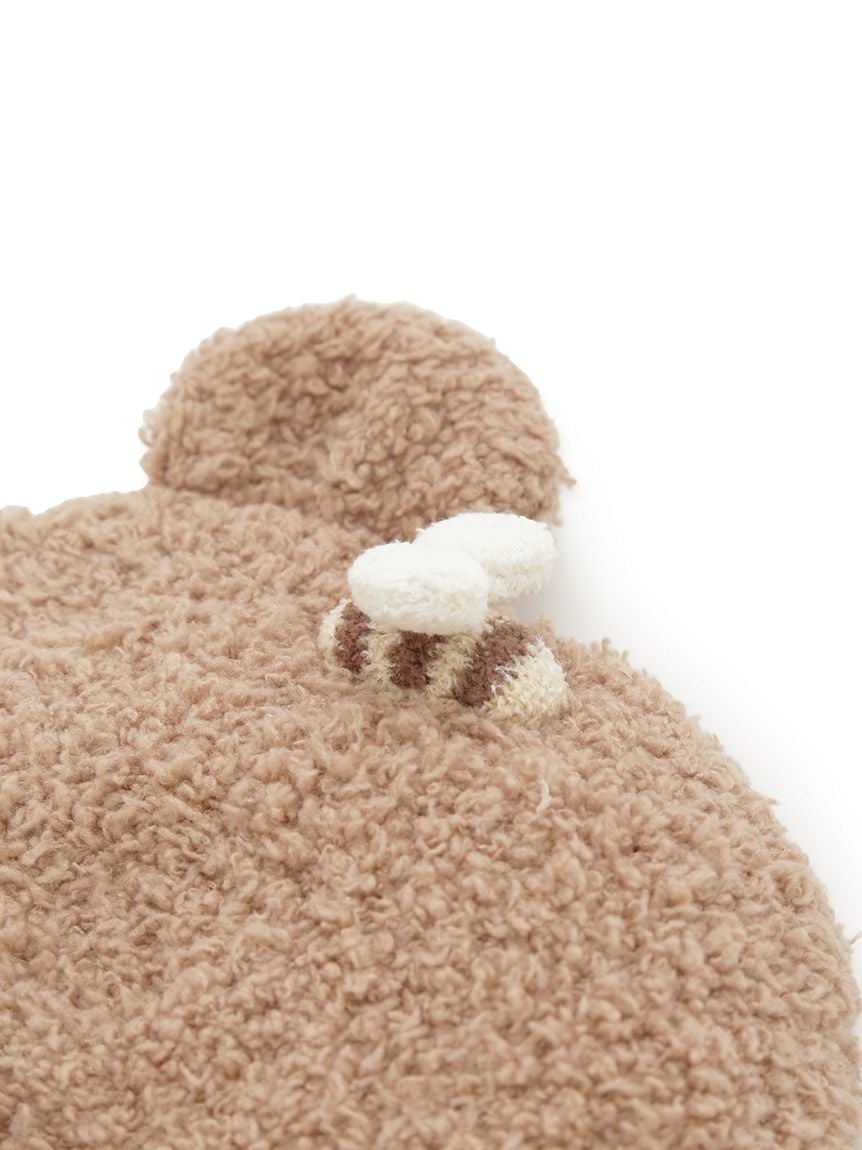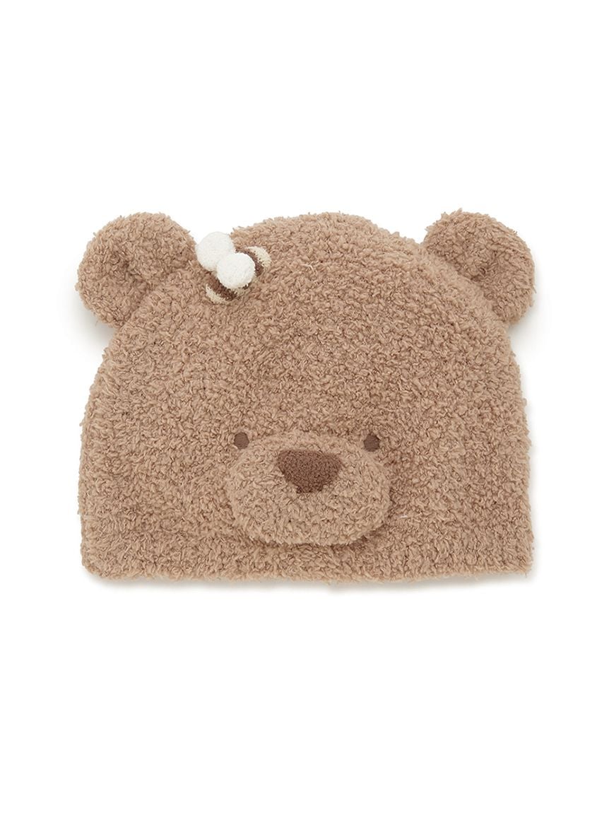 屬於蜂蜜小熊BABY系列小物。這款BABY帽以柔軟的BABY MOCO材質製作,呈現小熊的可愛臉型,並有小蜜蜂停留的趣味設計。