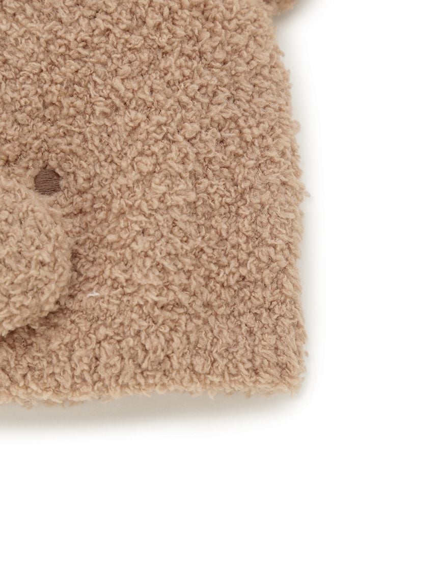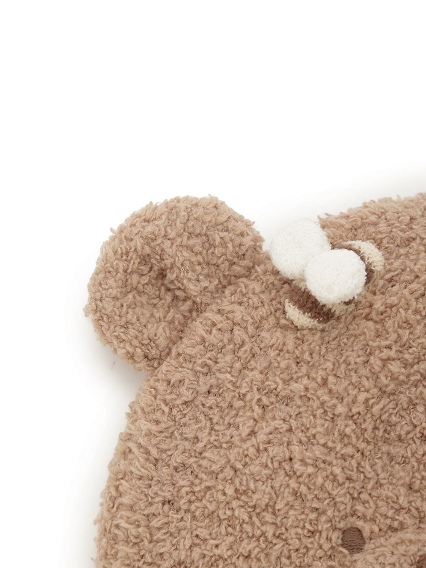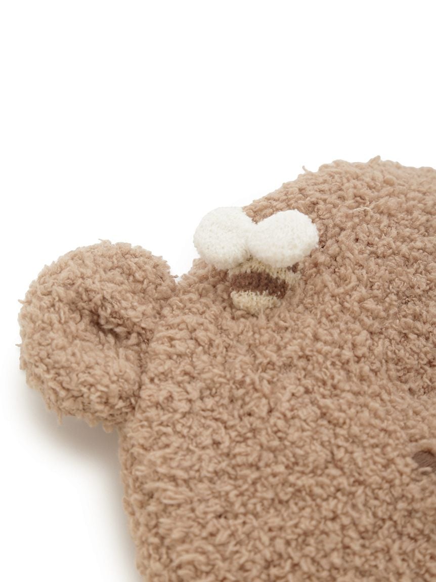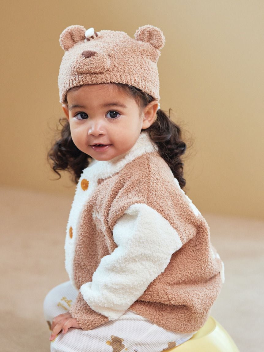 屬於蜂蜜小熊BABY系列小物。這款BABY帽以柔軟的BABY MOCO材質製作,呈現小熊的可愛臉型,並有小蜜蜂停留的趣味設計。