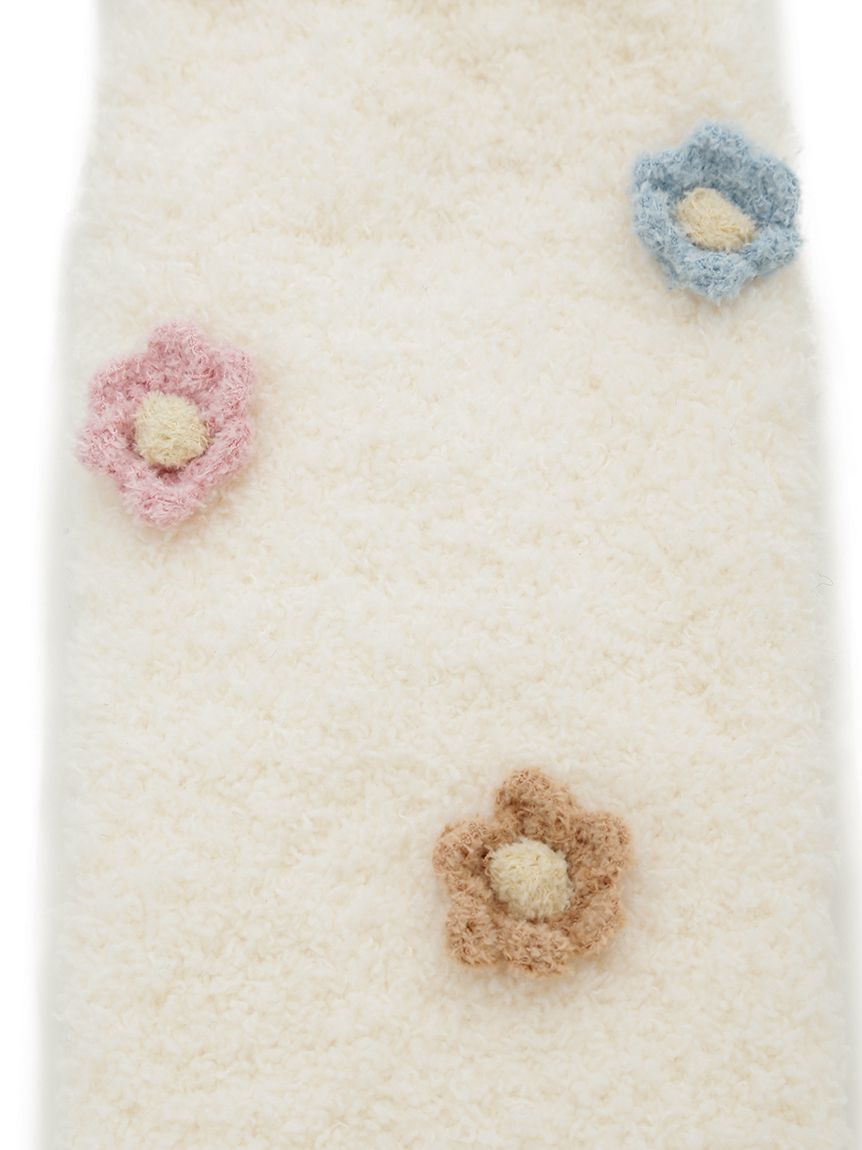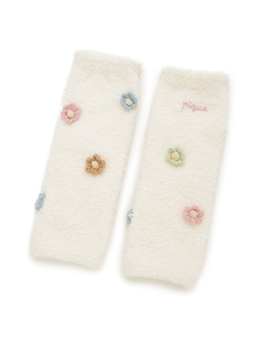 ,散布立體又繽紛的小花,為BABY小物系列增添可愛氛圍。腿套襪口以小花與荷葉邊設計,並點綴pique刺繡,亮眼又討喜。可與同系列服飾或小物搭配,也非常適合作為禮物。