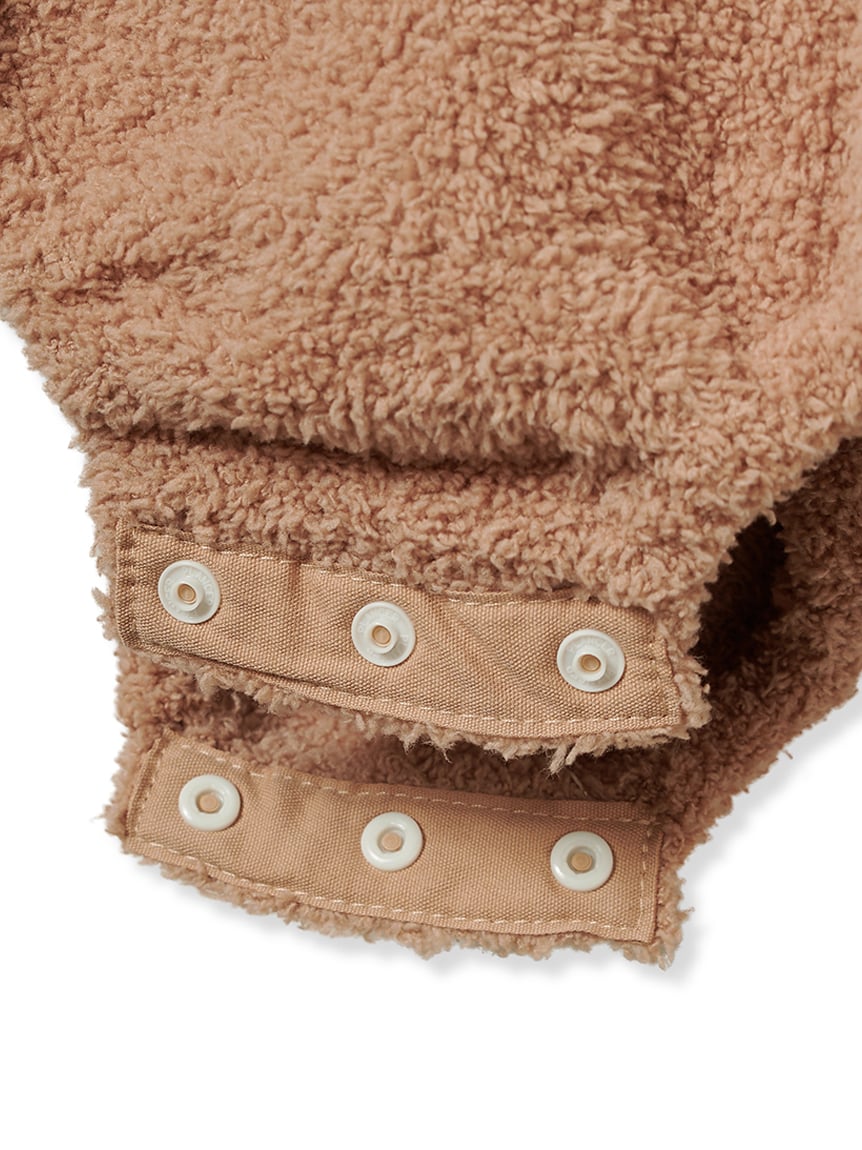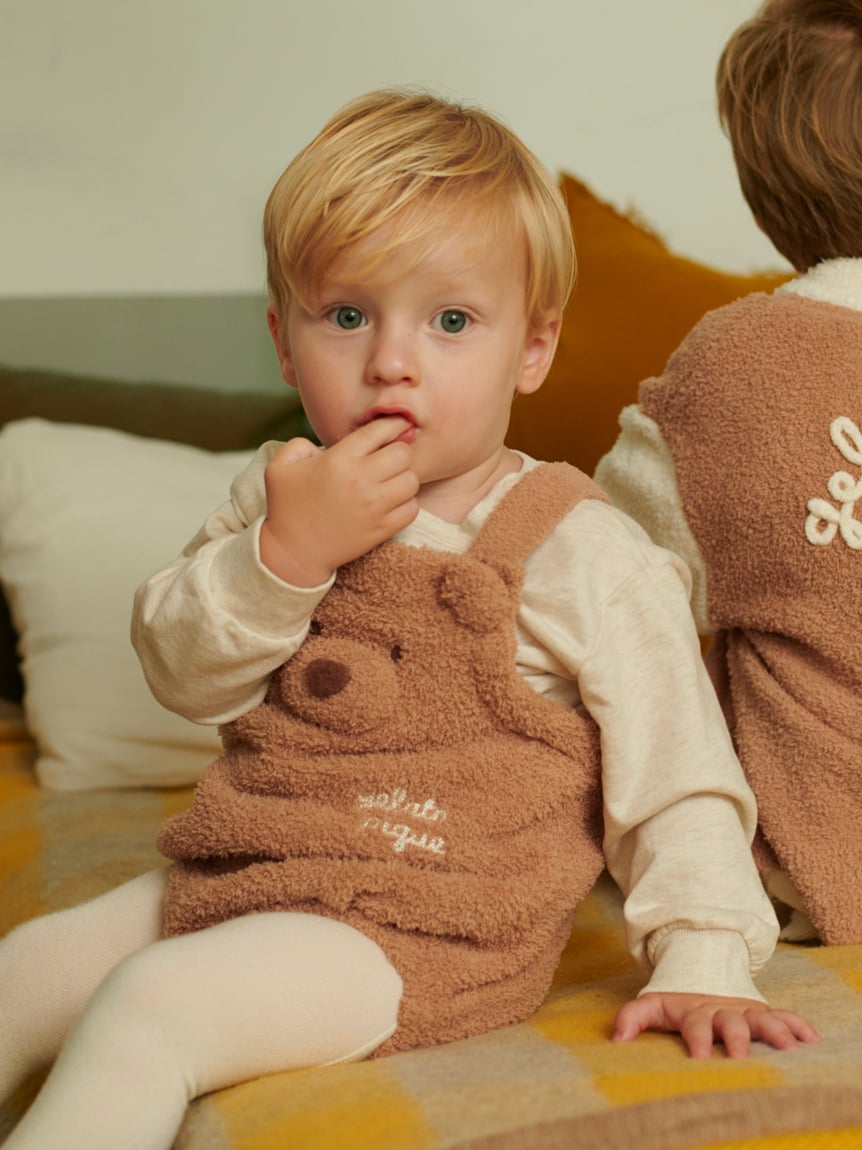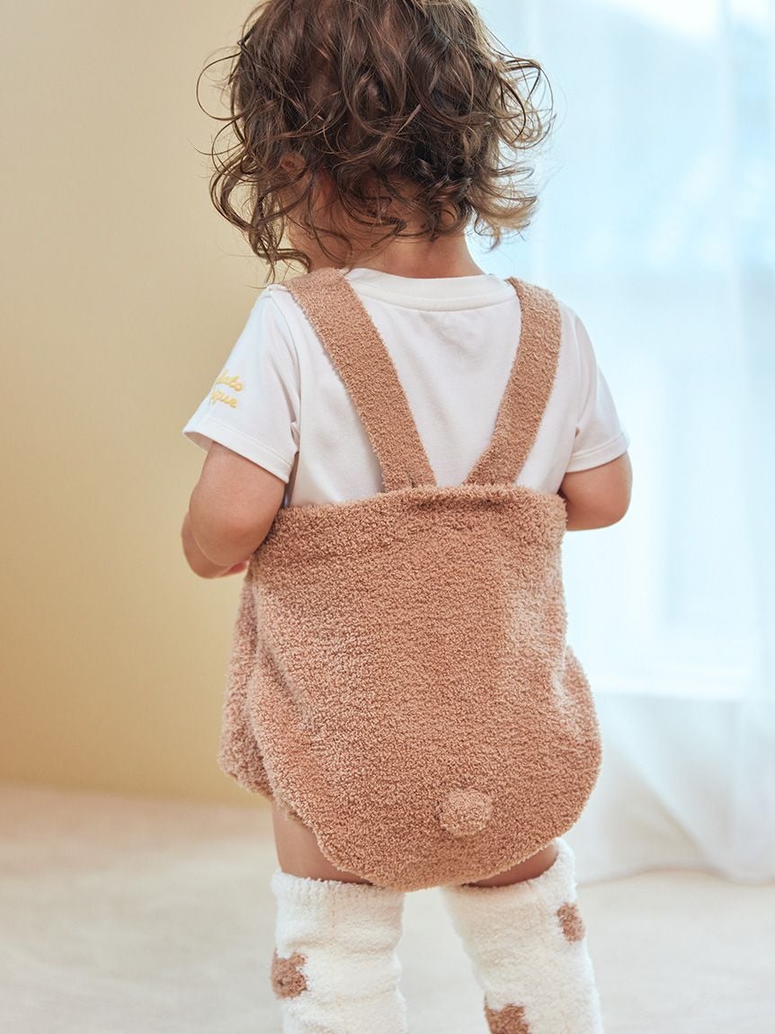 以繪本般筆觸描繪可愛的小熊與蜂蜜,打造出親子皆能共享的蜂蜜小熊系列。這款連身衣以小熊臉與尾巴點綴,造型俏皮吸睛,可依搭配方式延長穿著季節。可搭配同系列蜂蜜小熊印花上衣,與LADIES’、KIDS單品組成親子呼應穿搭,或搭配同期推出的寶寶絨小熊系列小物。