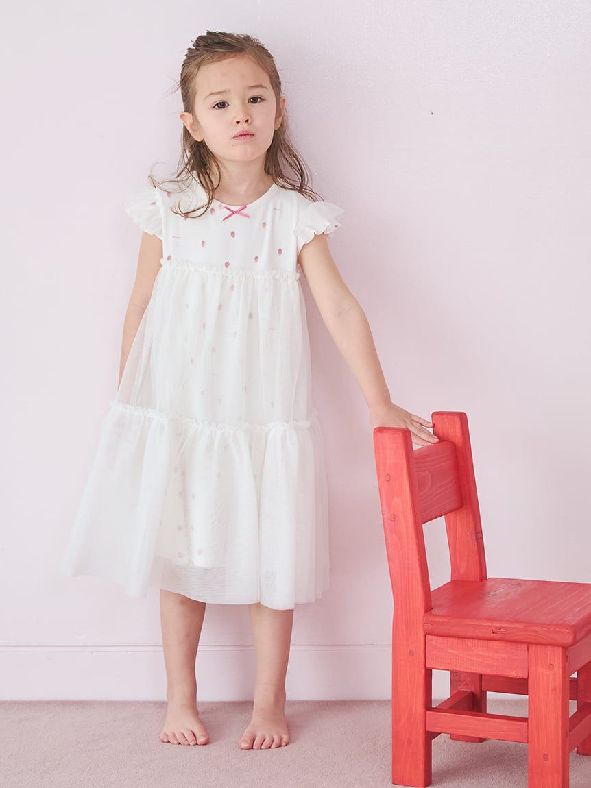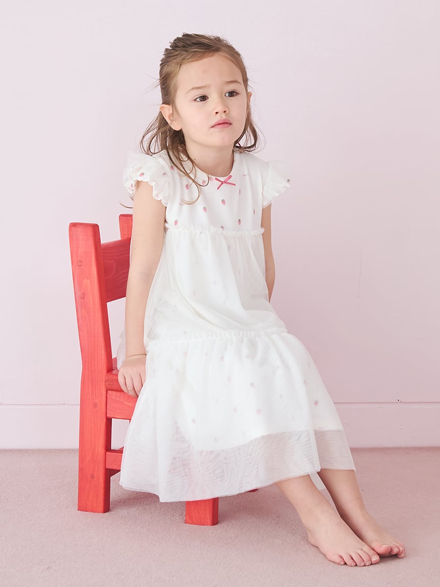 【適合紀念日或送禮的草莓圖案 KIDS 洋裝】