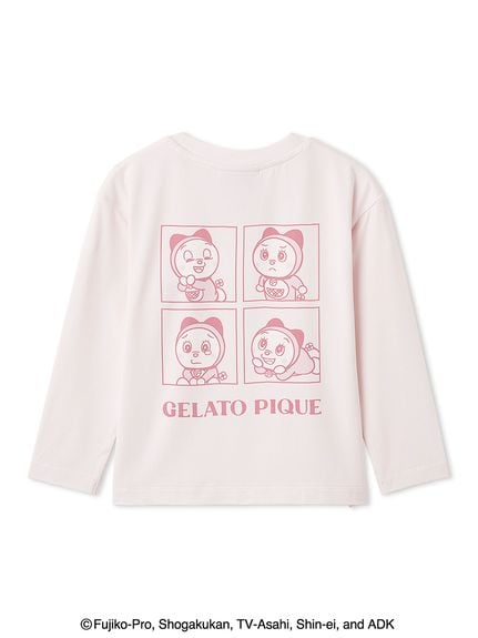 是一款可每天輕鬆穿搭的 KIDS 尺寸印花長袖 T 恤。背面以「窗戶」為靈感設計,呈現哆啦A夢與哆啦美在家中度過日常、展現各種表情的溫馨畫面。