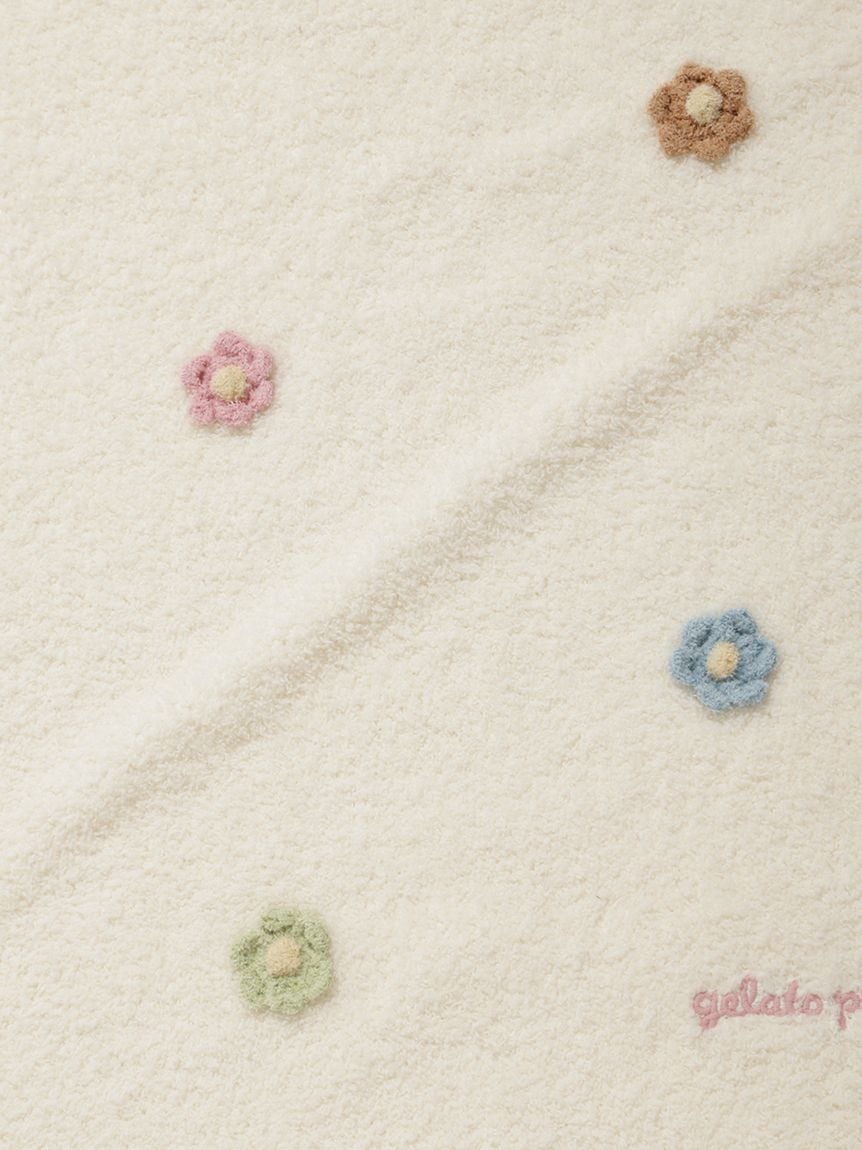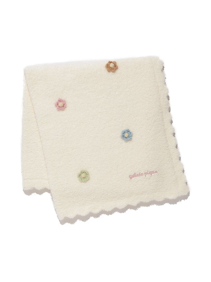 柔軟舒適的BABY MOCO針織布上散布立體繽紛小花,邊緣以花邊設計增添華麗感,適合午睡使用的小巧方形尺寸。搭配一點pique刺繡點綴,時尚又可愛,也非常適合作為禮物。
