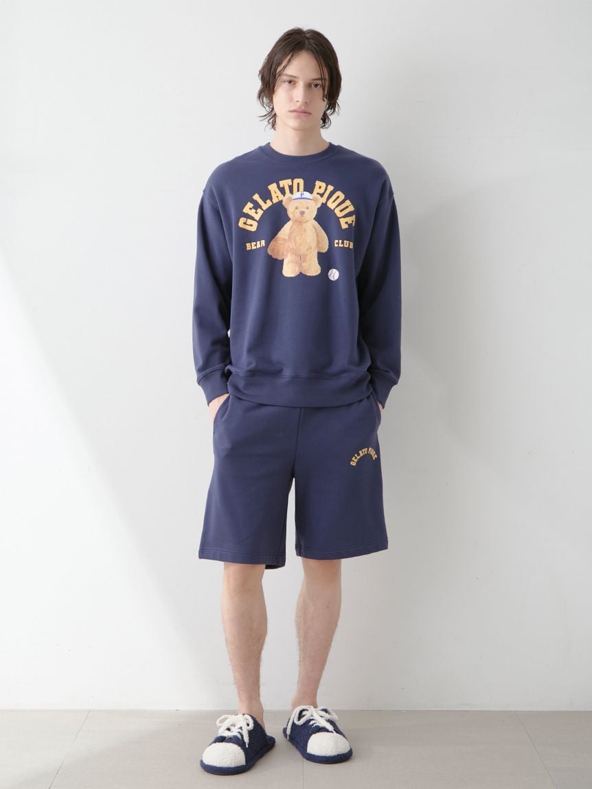 以享受各種運動的運動小熊為主題,結合流行運動風格的系列。HOMME尺寸的內刷毛短褲,注重柔軟與舒適的穿著感。左下擺有明亮配色的拱形LOGO刺繡,右臀口袋則刺繡了打棒球的小熊圖案,細節包括動作姿勢與表情,呈現gelato pique特有的可愛設計。建議可與同系列連帽衫、T恤或其他雜貨搭配,也可與LADIES’尺寸做親子/情侶配對造型。