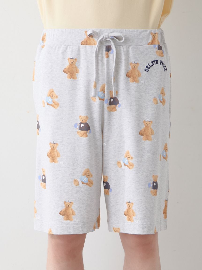 以享受各種運動的運動小熊為主題,結合流行運動風格的系列。HOMME尺寸的短褲,全身印有棒球、伸展運動與滑板三種小熊姿勢的活潑圖案,營造運動感又休閒的日常穿搭氛圍。左腰刺繡拱形LOGO,兩側與右臀設有便利口袋。同系列的T恤、內刷毛上衣或其他配件都能輕鬆搭配,也可與LADIES’尺寸做親子/情侶配對造型。
