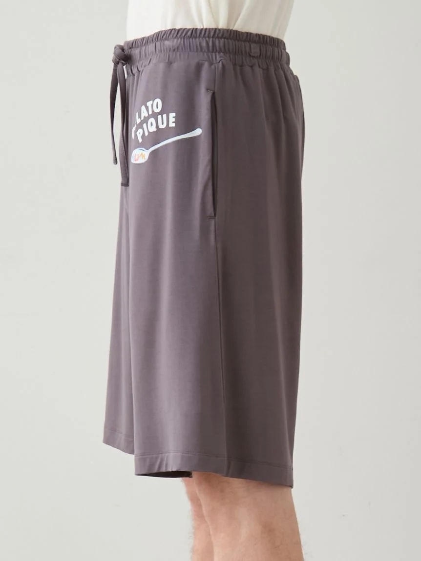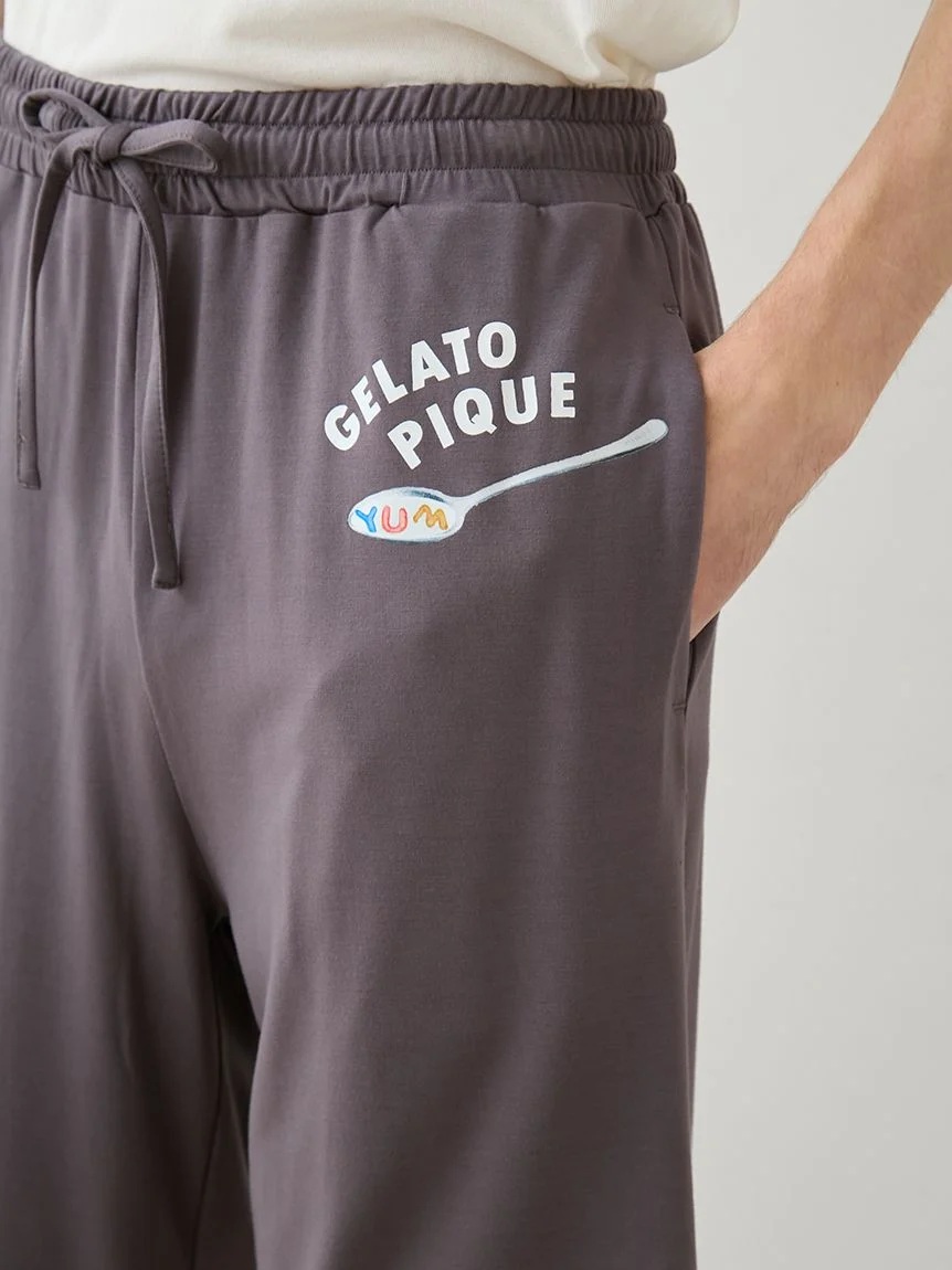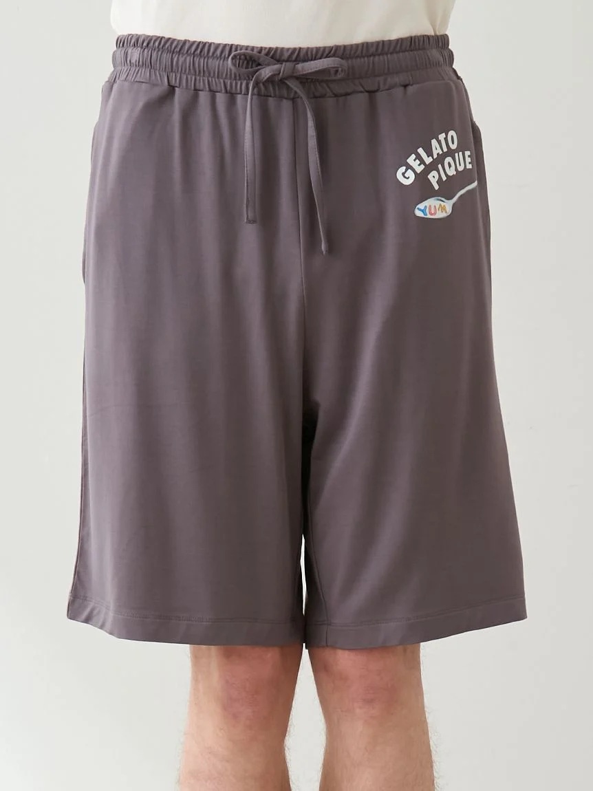 這款印花短褲以湯匙舀起的繽紛麥片為靈感,呈現出「yum」的趣味訊息。在兩側與右後方設有口袋的經典設計中,融入了GELATO PIQUE特有的玩趣元素。