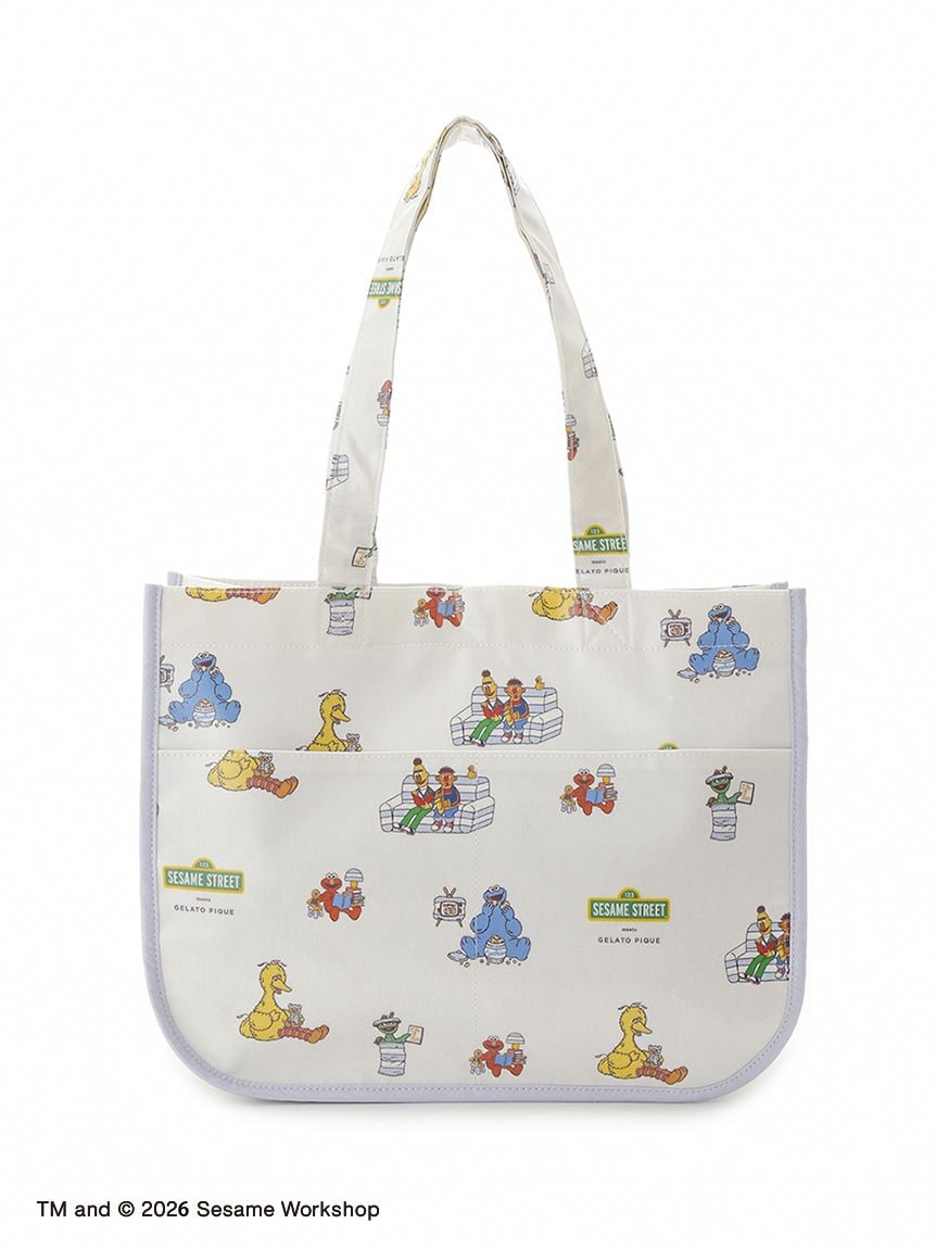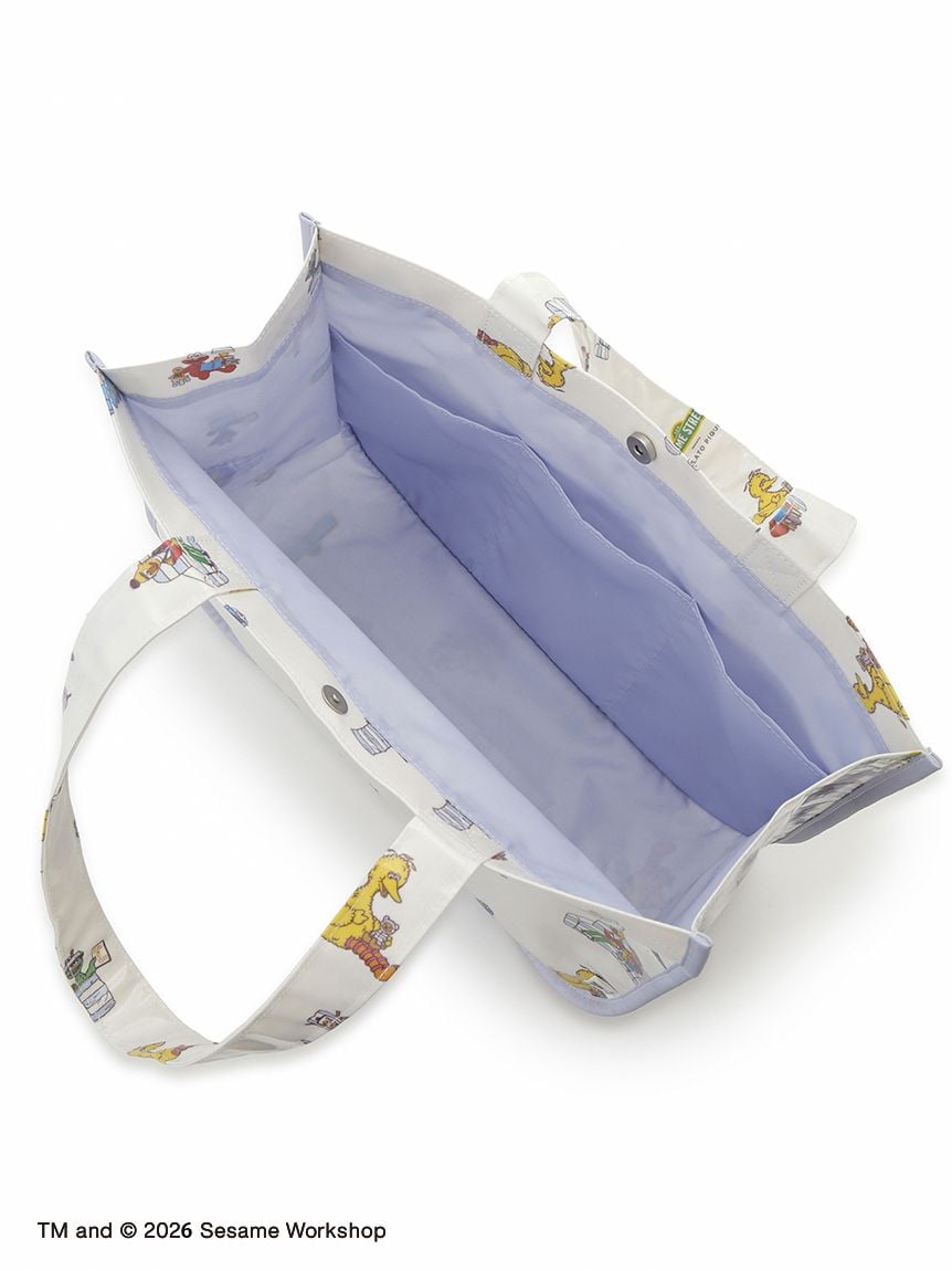 將Elmo、Cookie Monster、Big Bird、Oscar,以及Ernie與Bert印花呈現的滿版托特包。
