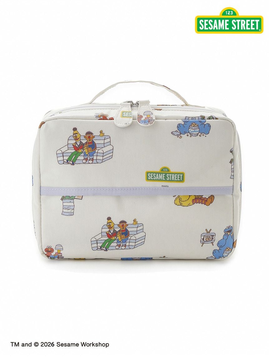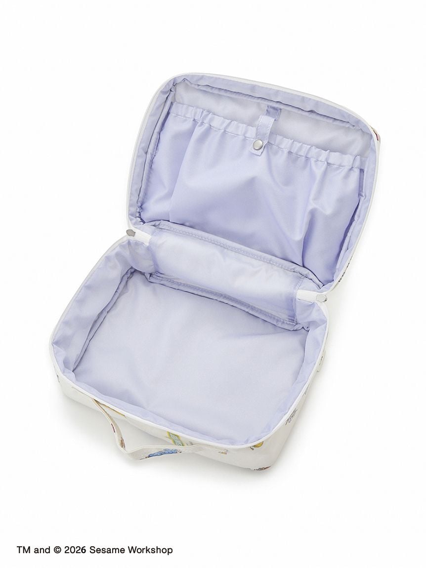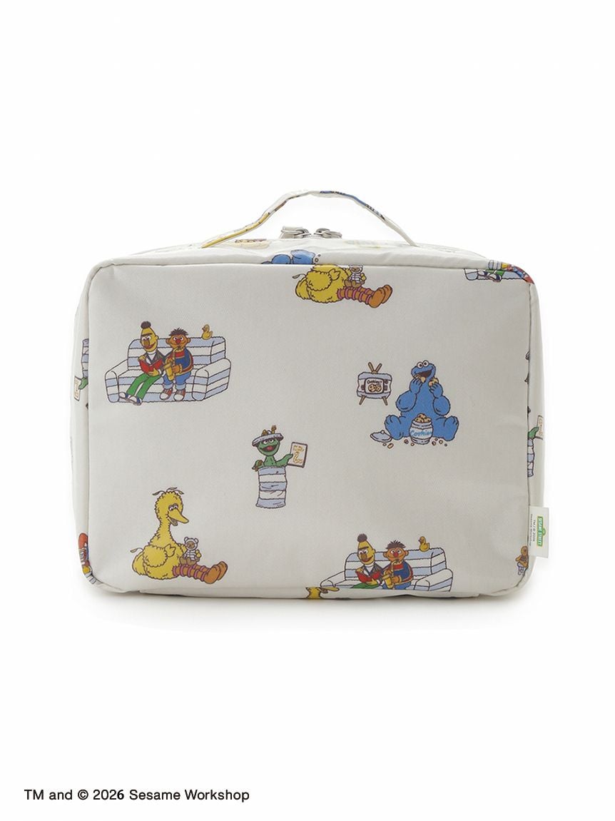 將Elmo、Cookie Monster、Big Bird、Oscar,以及Ernie與Bert印花呈現的滿版尿布收納包。