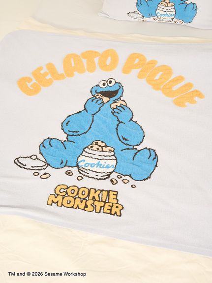 使用輕盈的Airy Moco,印有Elmo、Cookie Monster圖案的提花半身毯。