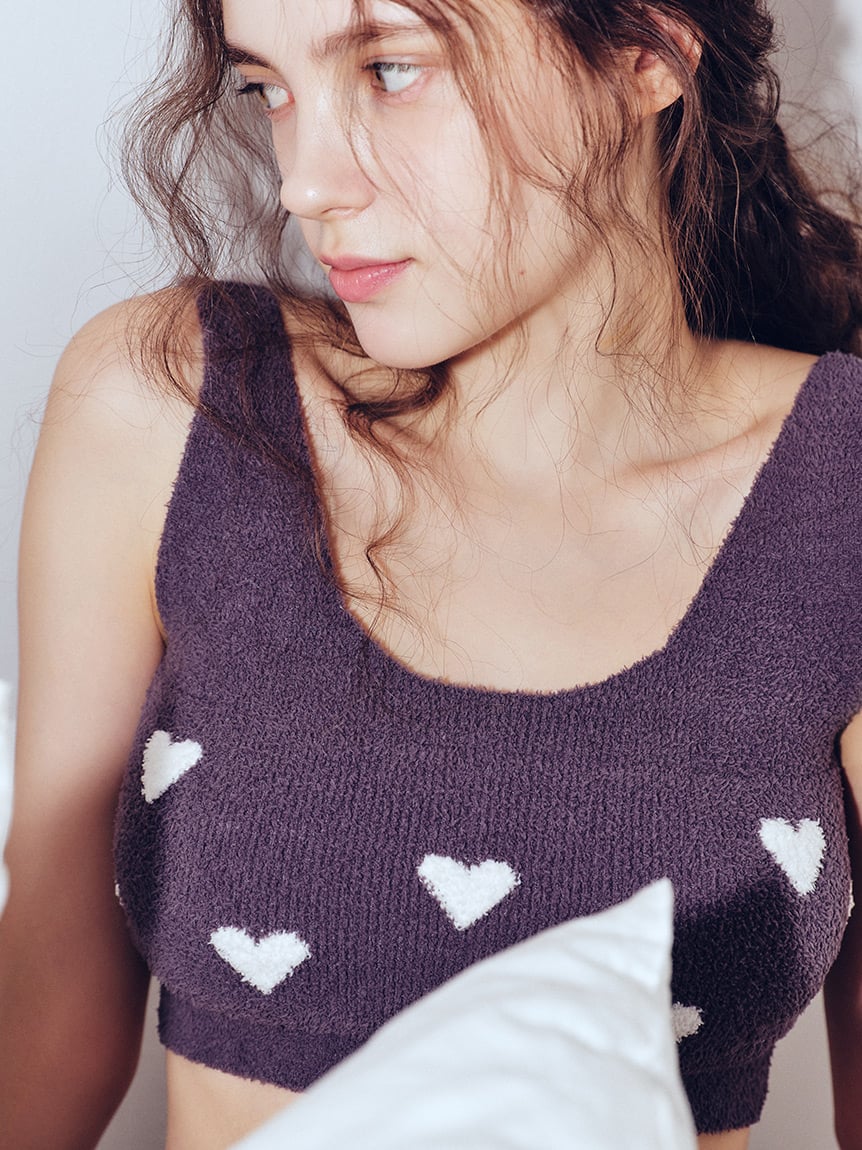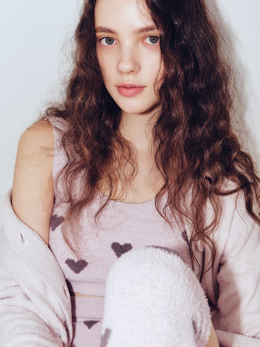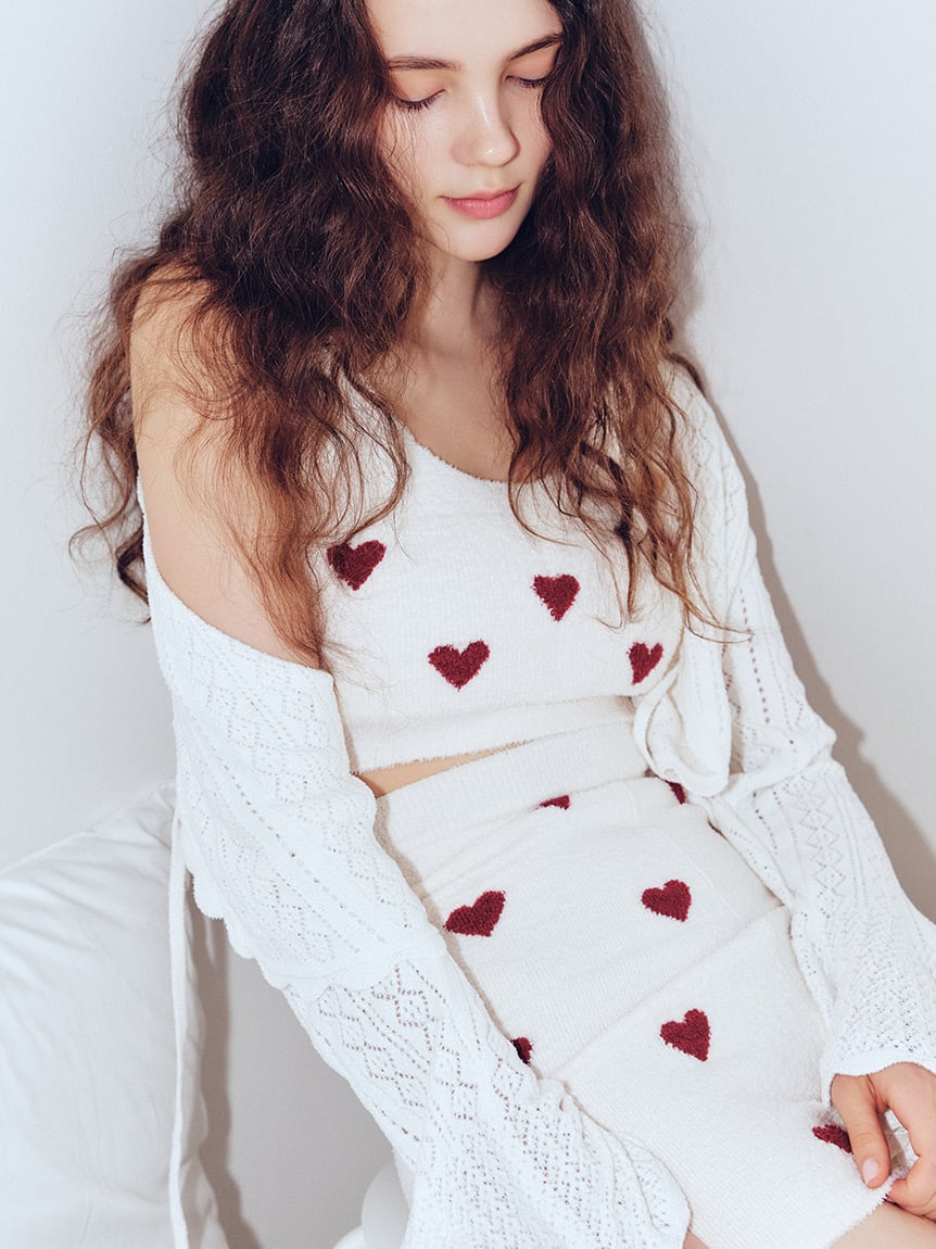 採用蓬鬆柔軟且觸感舒適的針織材質,搭配愛心圖案提花設計。
