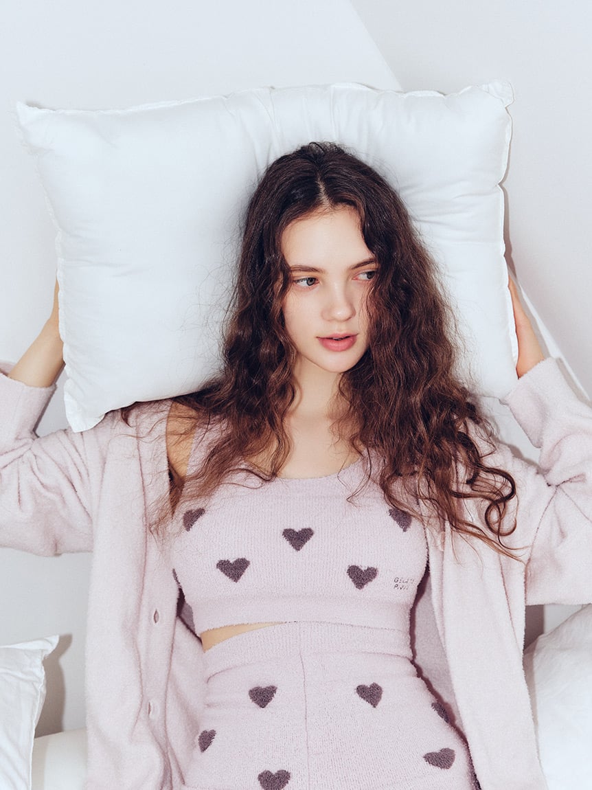 以展現大人可愛風格的愛心圖樣為主題,並加入Logo點綴作為設計亮點的夜間內衣。
