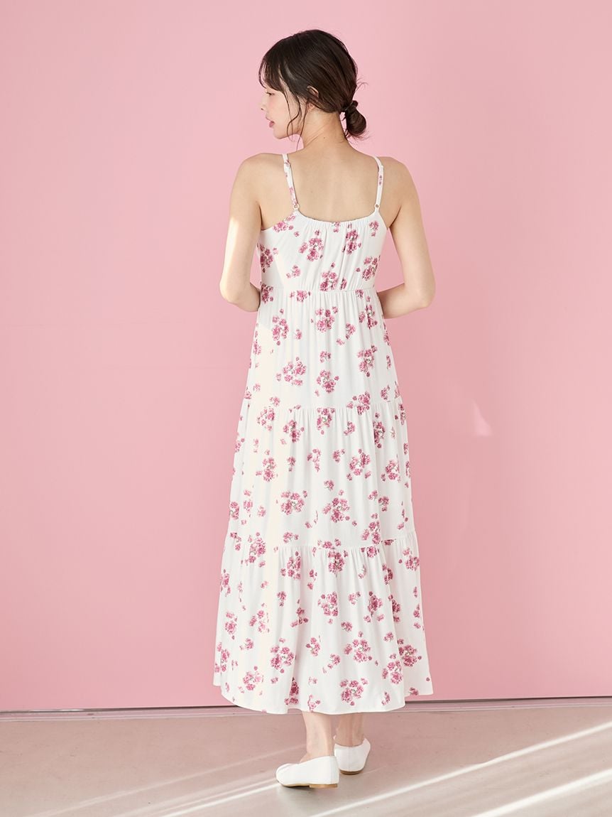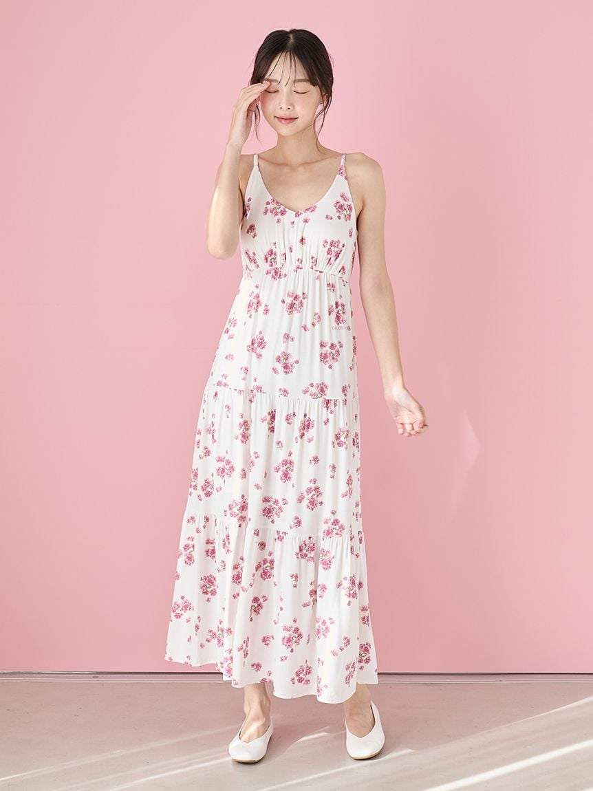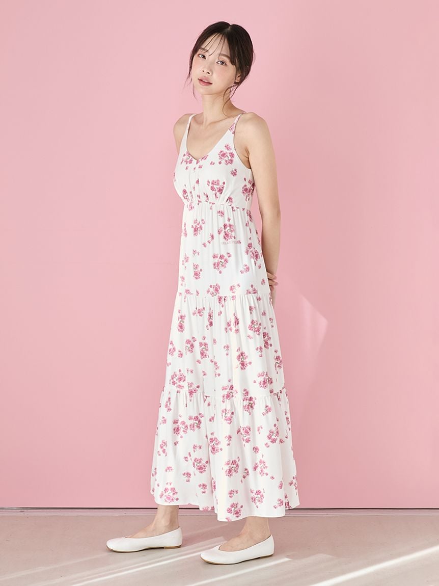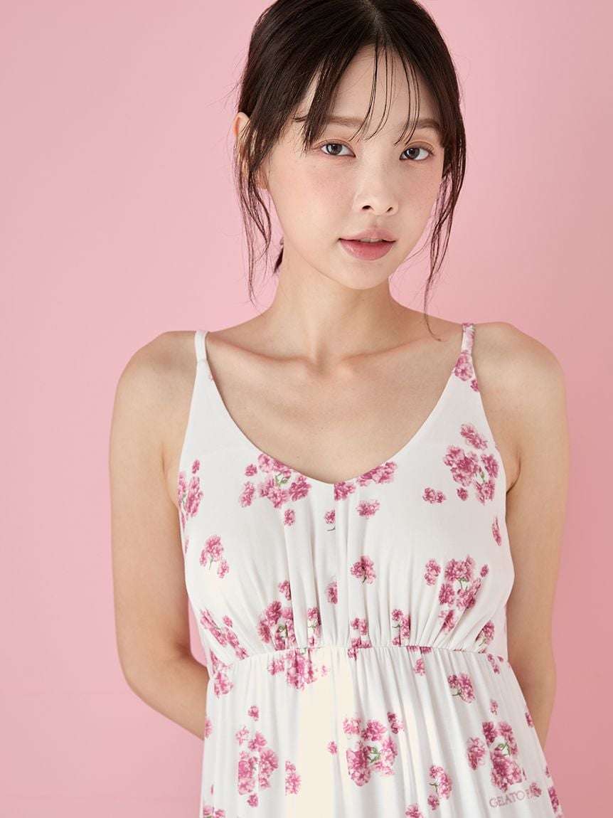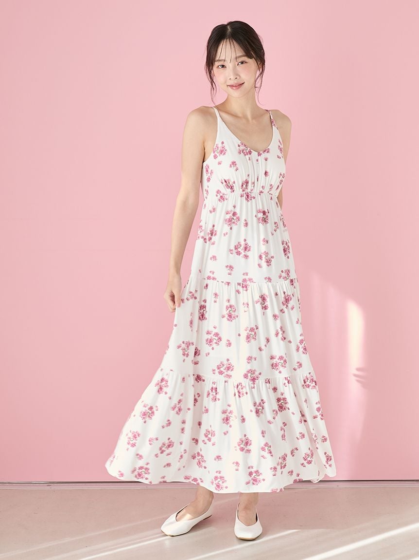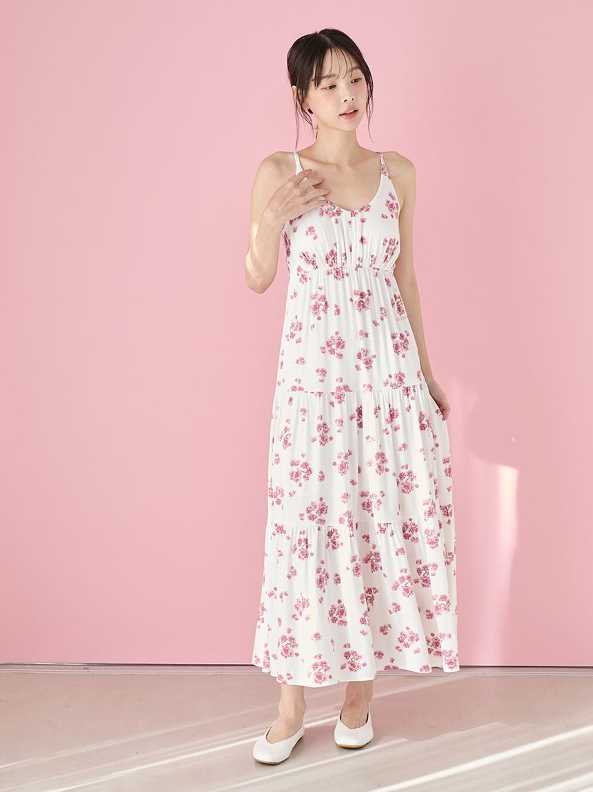 【盛開八重櫻印花吊帶洋裝】