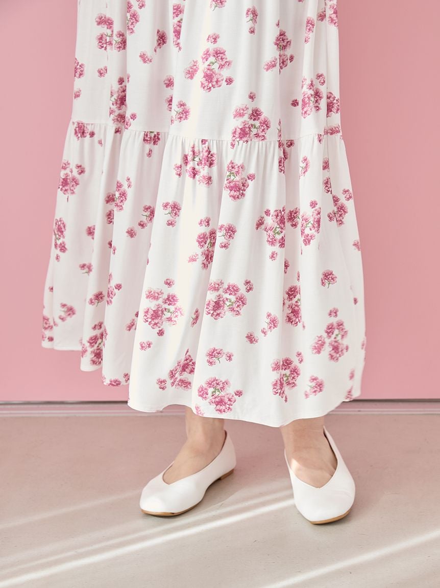 洋裝以蓬鬆可愛、如燈籠般的輪廓呈現盛開八重櫻的全身印花。