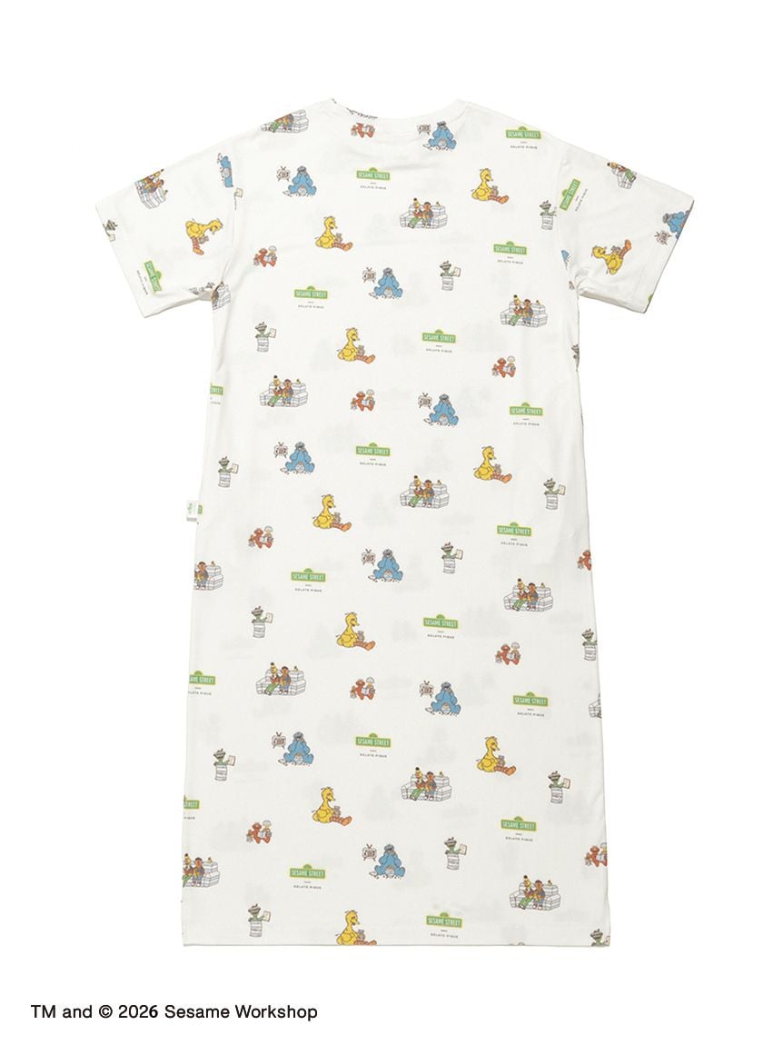 【SESAME STREET,人氣角色搭配Pique藍點綴的滿版短洋裝】