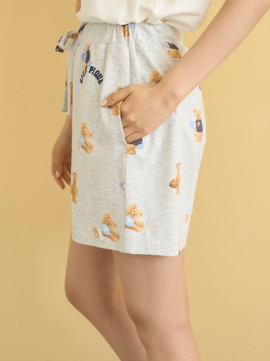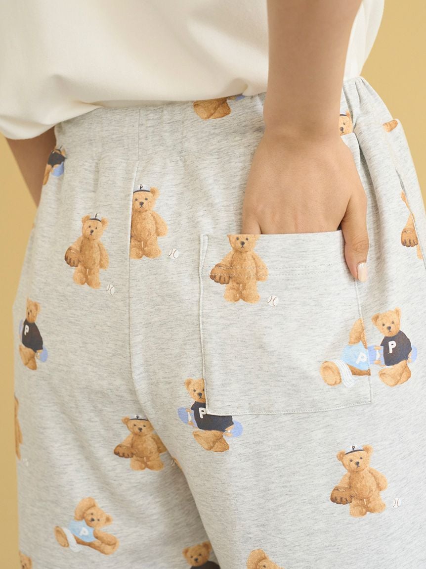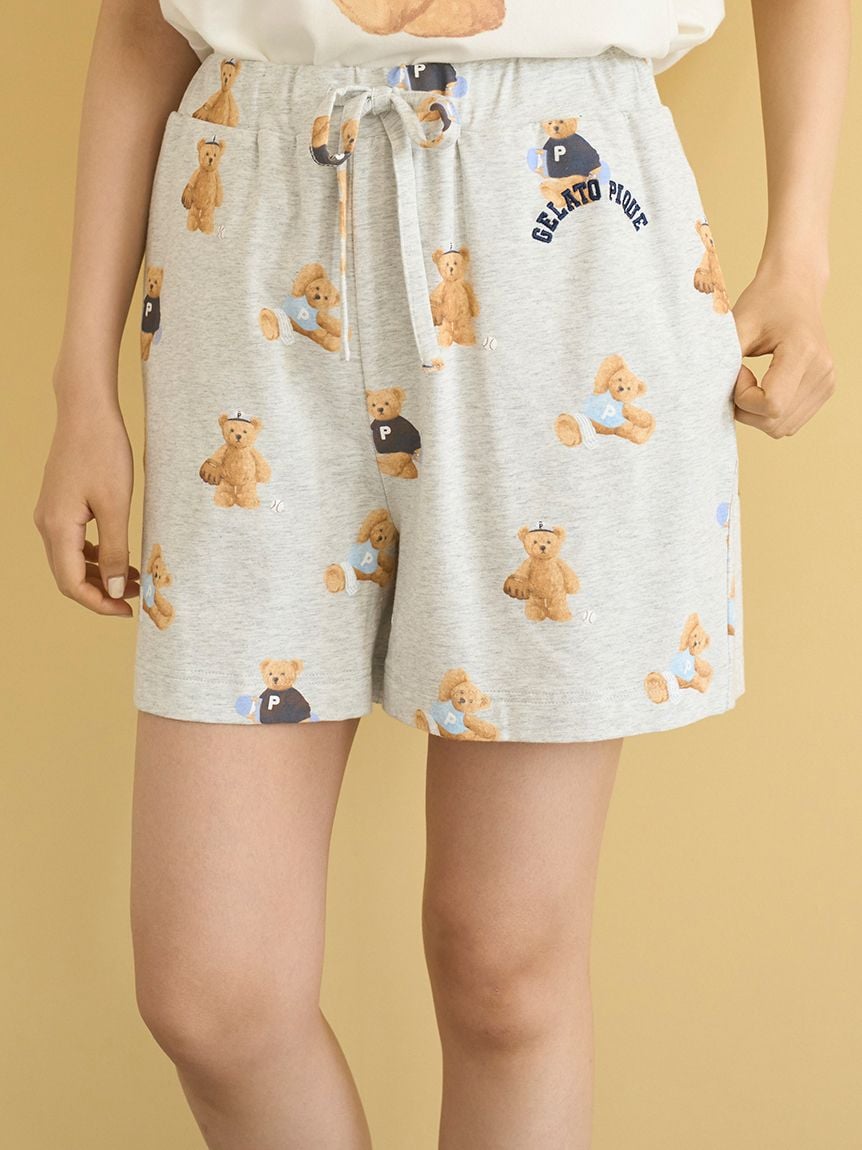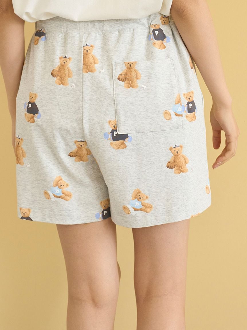 以享受各種運動的小熊為主題,融入流行運動風格設計的系列短褲。全身印花呈現三種運動姿勢的小熊:棒球、伸展及滑板,活潑可愛。