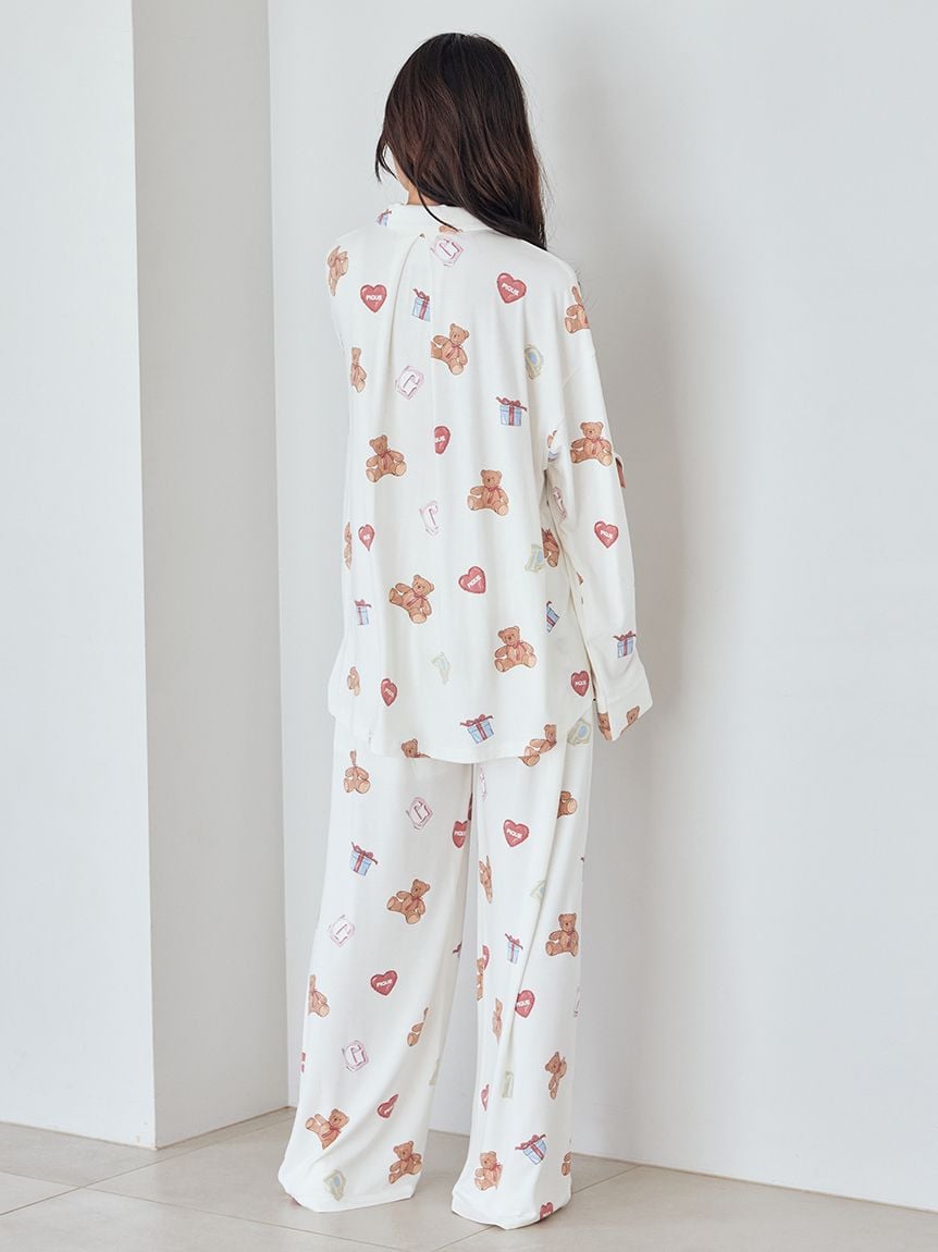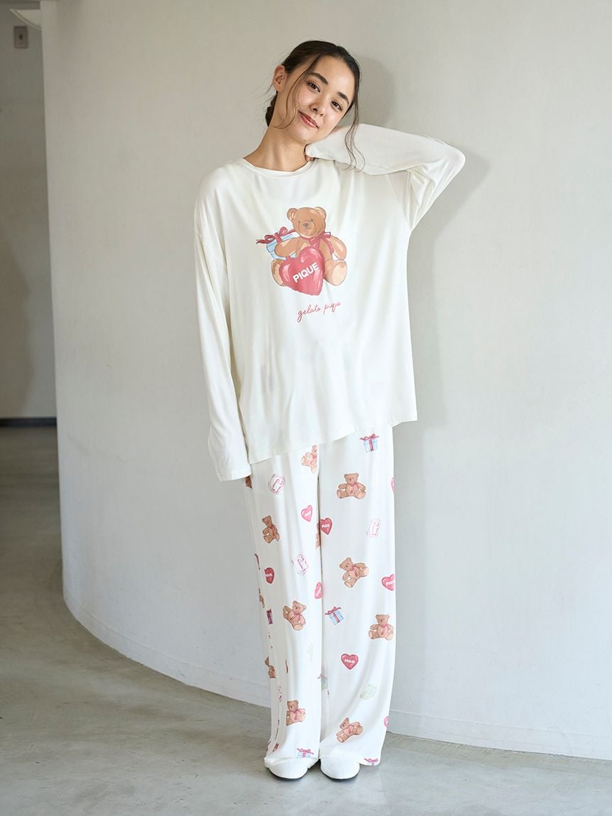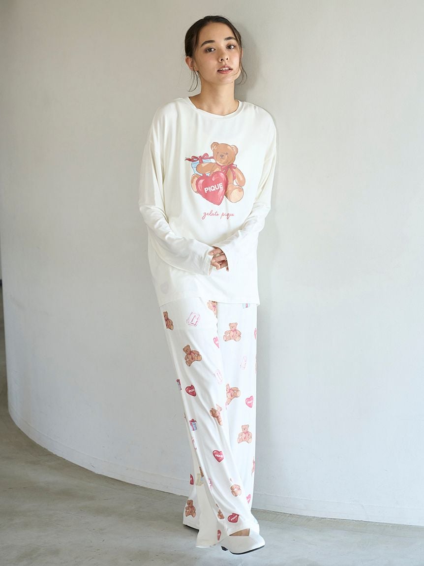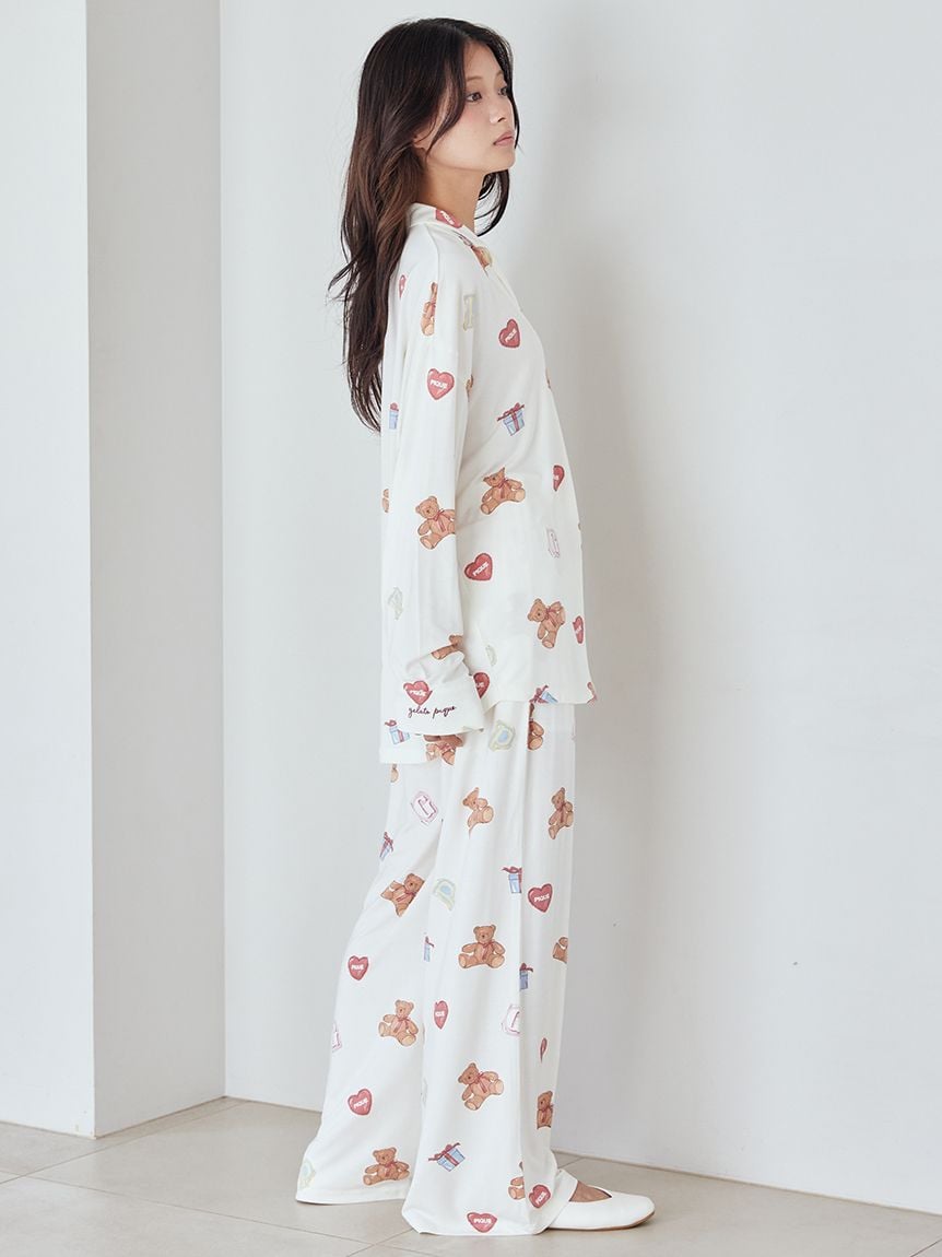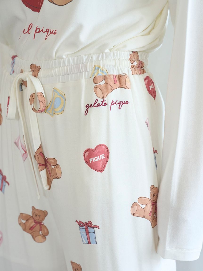 以女孩房間與心愛小熊玩偶為靈感打造的印花系列長褲。將小熊玩偶、禮物盒、愛心抱枕,以及仿雜誌剪貼感的「P」與「G」字母化作滿版印花,甜美又充滿玩趣。版型為輕鬆好穿的直筒剪裁,帶來自在舒適的穿著感受。