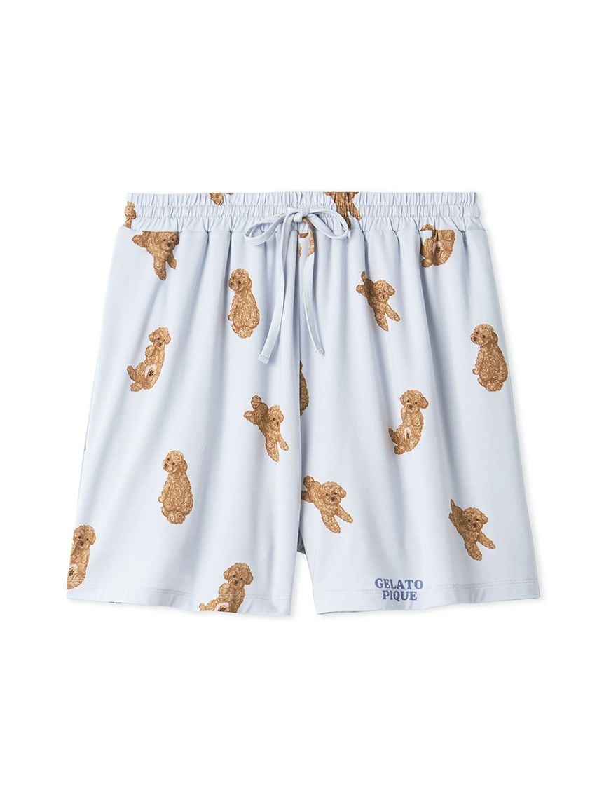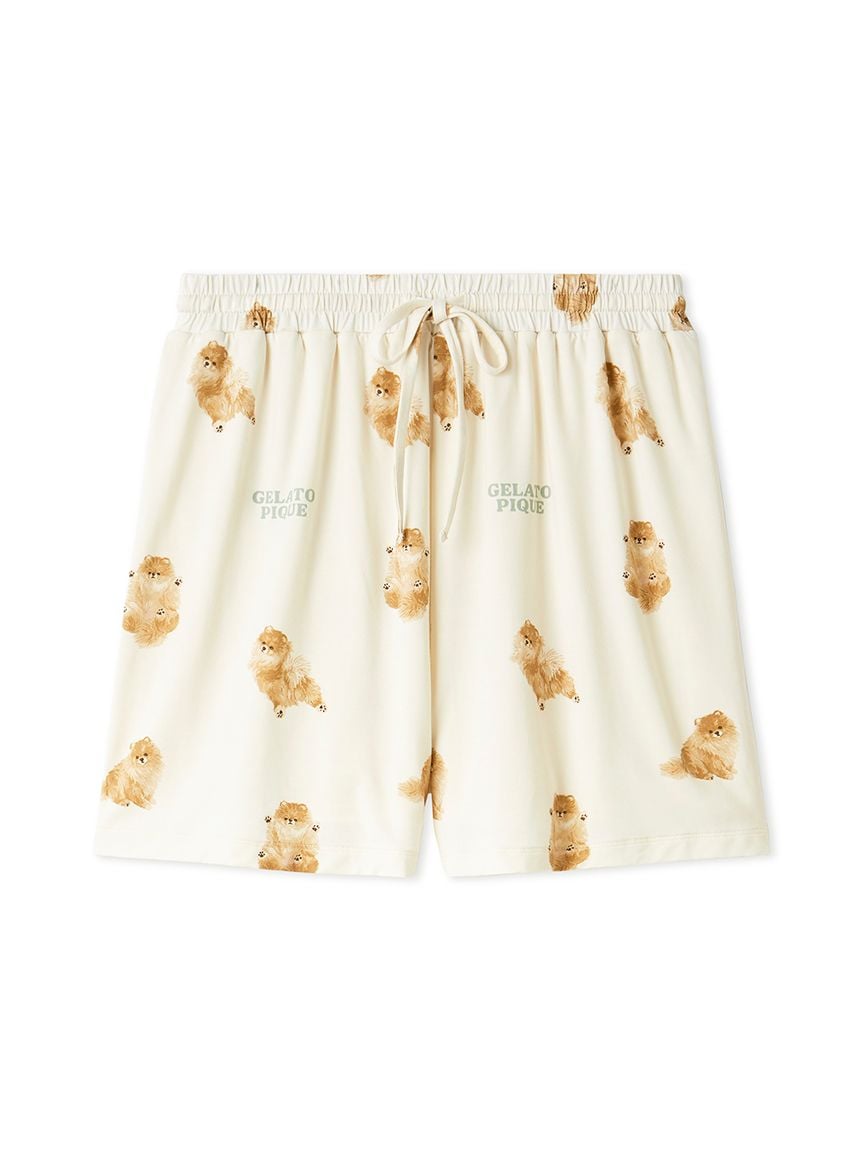 採用垂墜感十足的粘膠纖維製作,整件印滿可愛圖案的短褲。