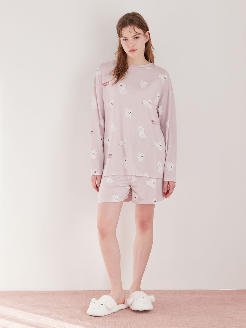 以仰躺露肚皮或坐姿等多種姿勢的小狗為主題設計,打造全家都能享受的狗狗圖案系列。