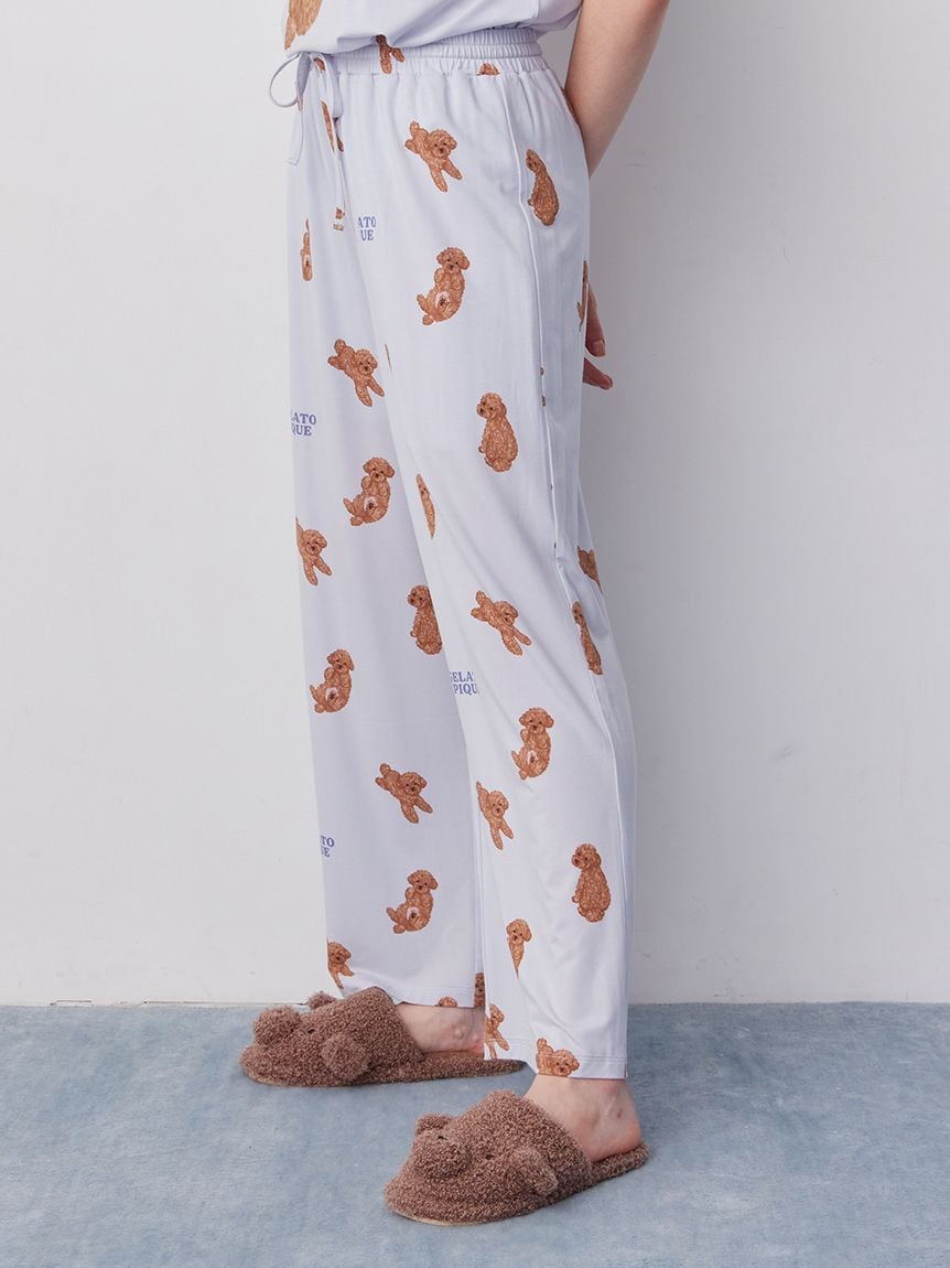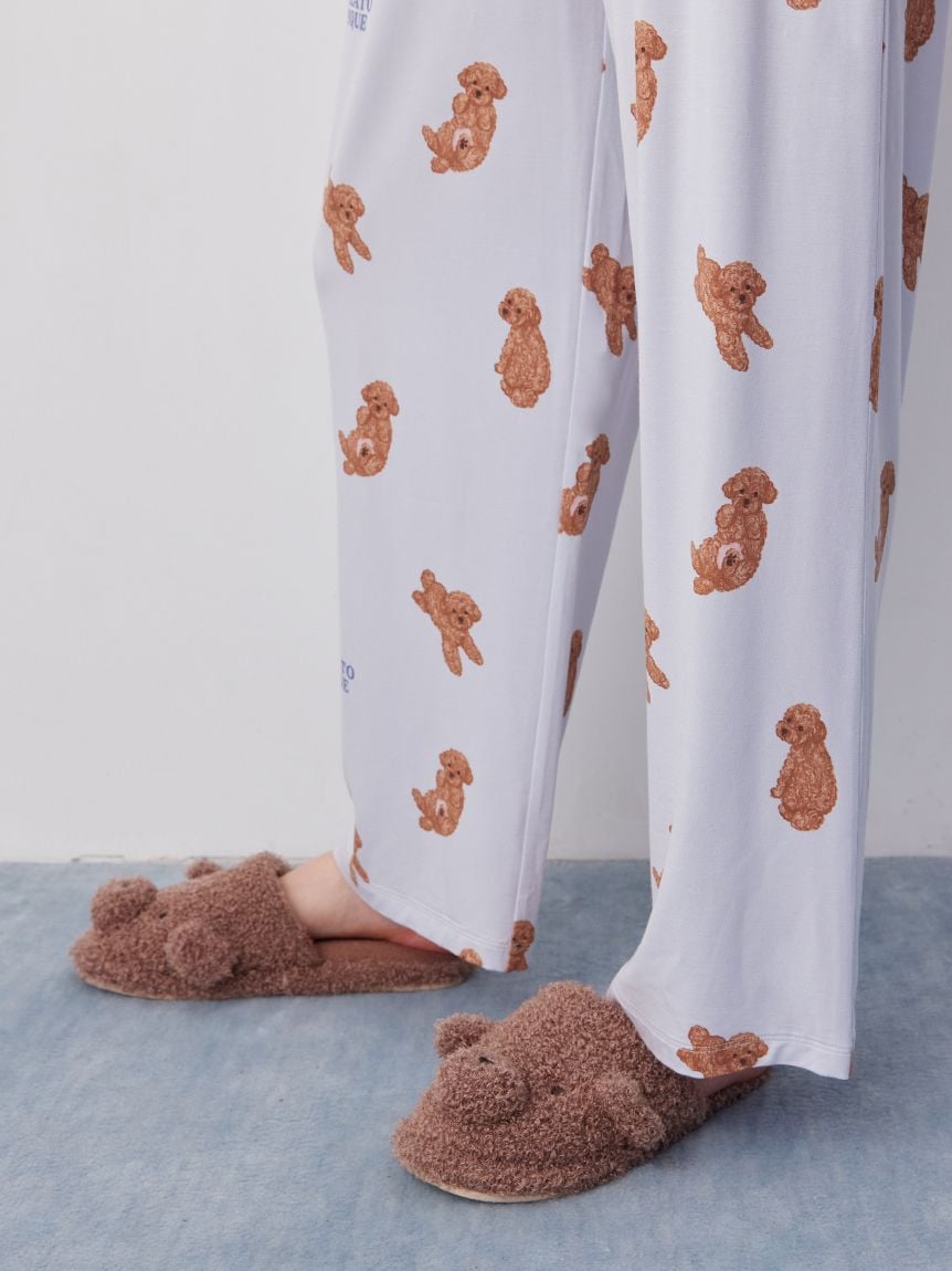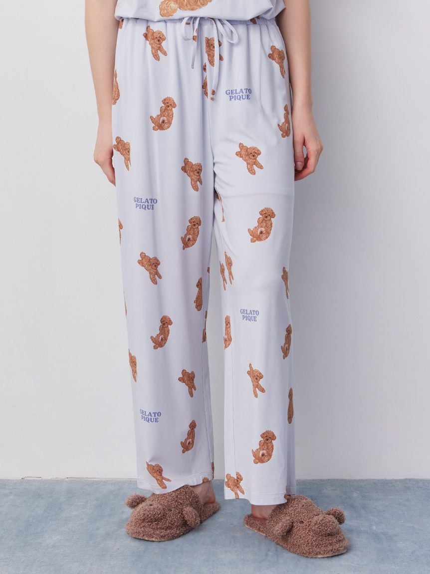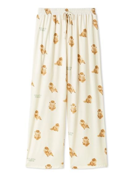 採用垂墜感十足的粘膠纖維製作,整件印滿可愛圖案的長褲。