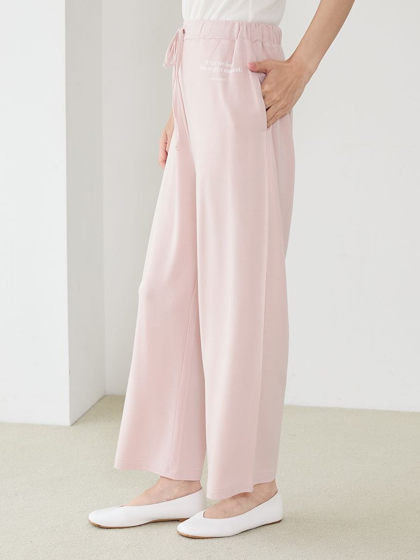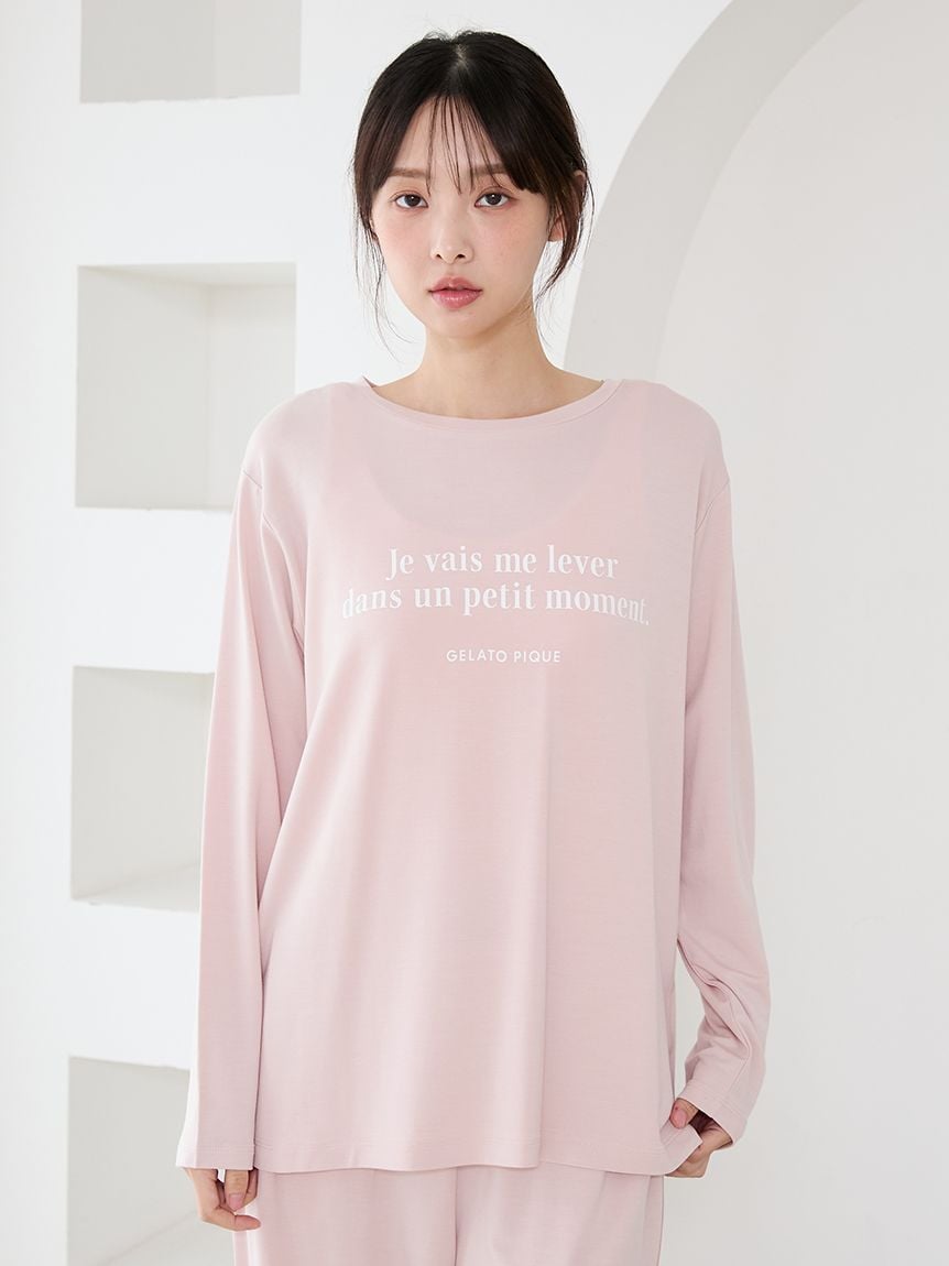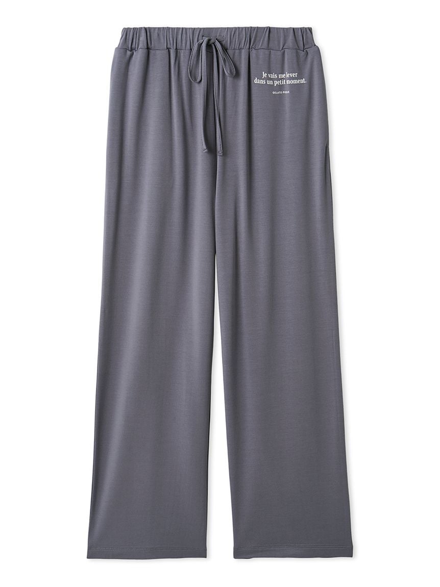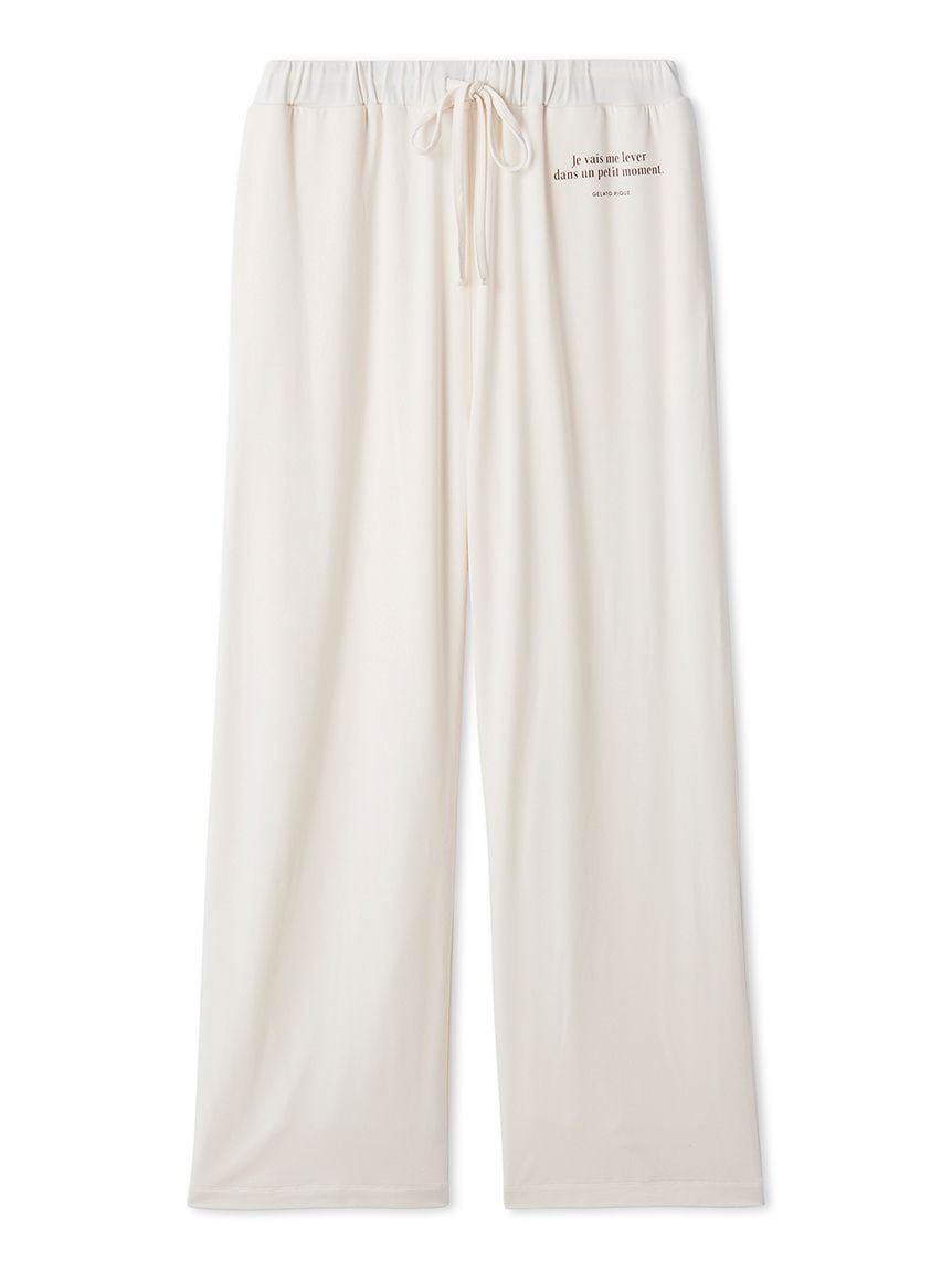 這款長褲採用柔軟且觸感清爽的舒適印花面料製作,左腰印有法語「再過一會就起床」的訊息。