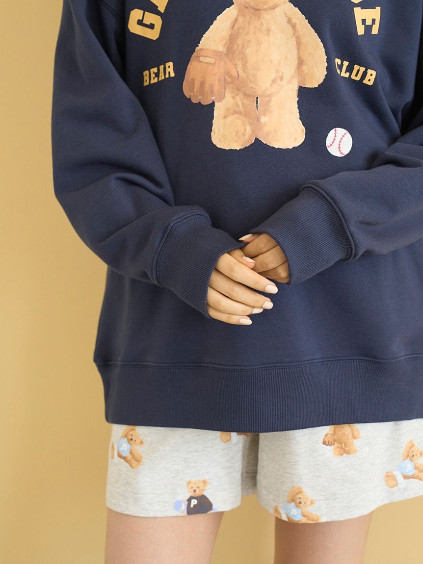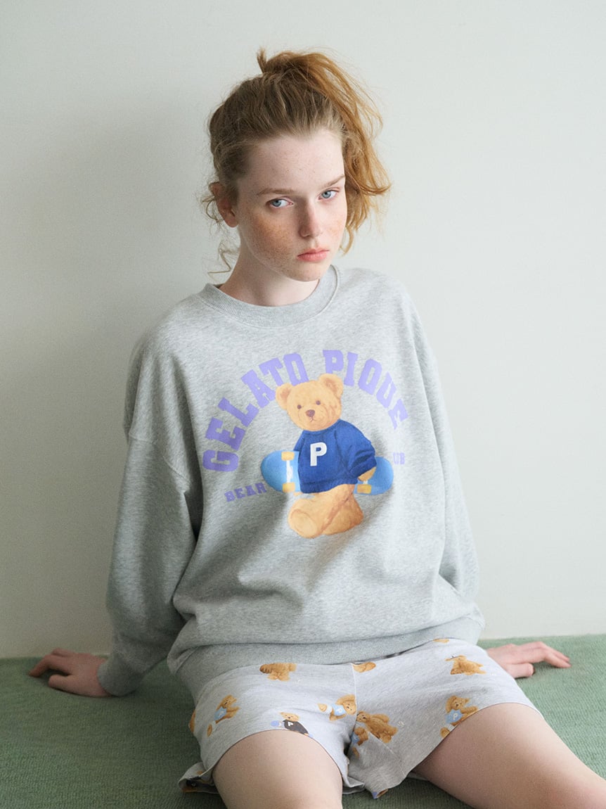 每個顏色都有專屬圖案:IVR是伸展運動、GRY是滑板、NVY則是棒球。小熊的動作與表情都細緻描繪,展現gelato pique特有的俏皮魅力。推薦與同系列的內刷毛短褲、滿版印花褲款或小物搭配,也能和HOMME尺寸組成情侶穿搭。