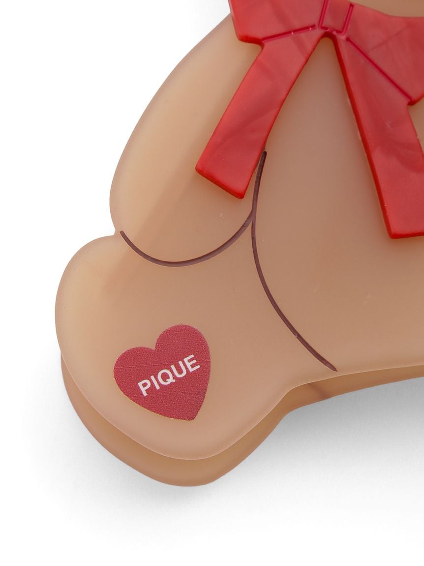 以「與心愛小熊玩偶一同生活的女孩房間」為靈感打造的 FAVORITE 印花小物系列。將居家服上的小熊玩偶化為立體髮夾呈現,蝴蝶結採立體造型,腳底還點綴愛心 PIQUE 標誌,小巧擺放在房間裡也充滿療癒氛圍。