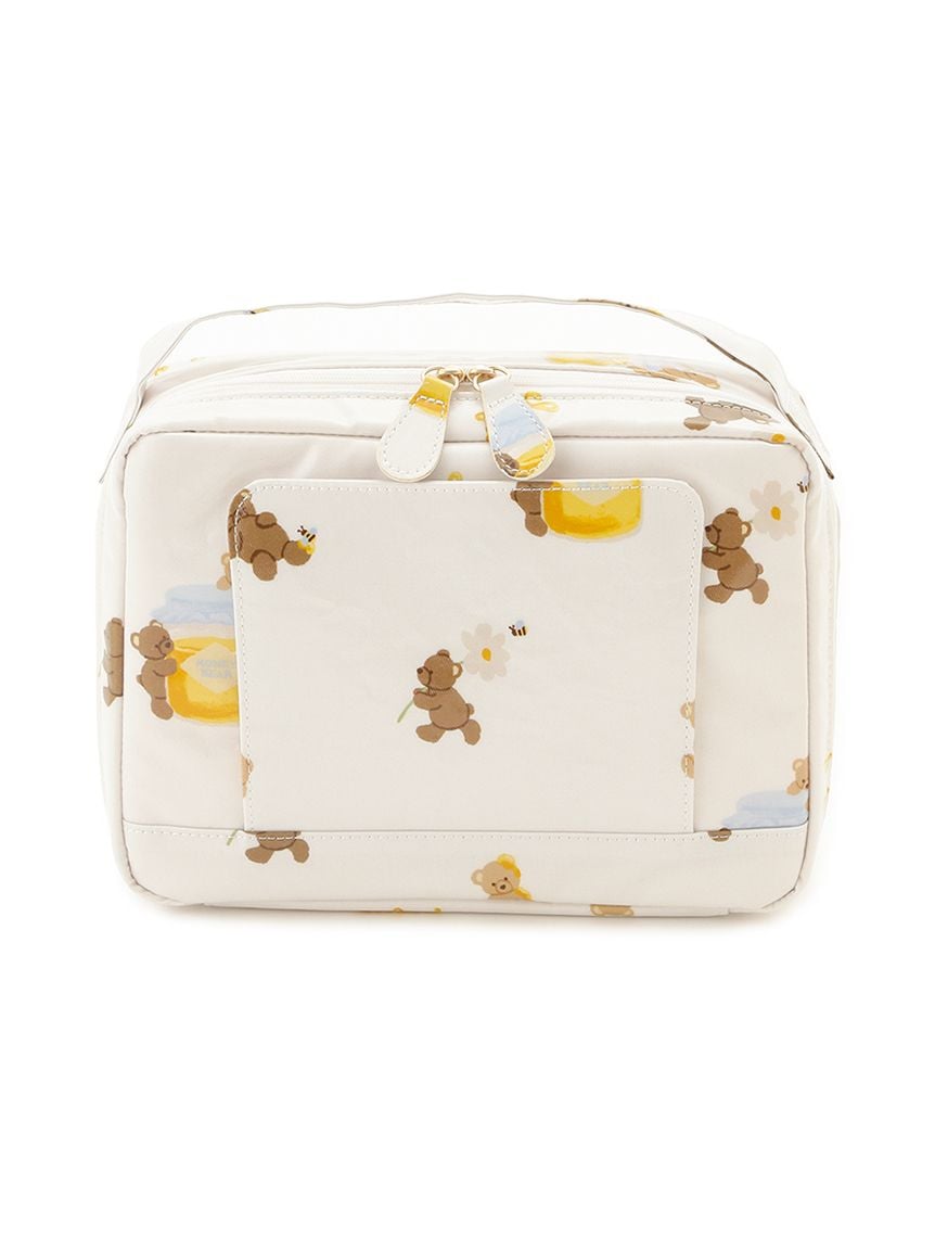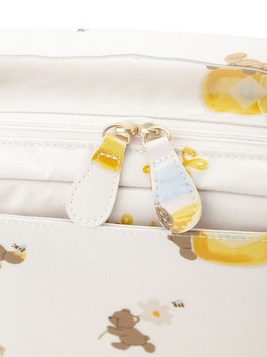 【繪本般溫柔蜂蜜小熊圖案的尿布收納包】