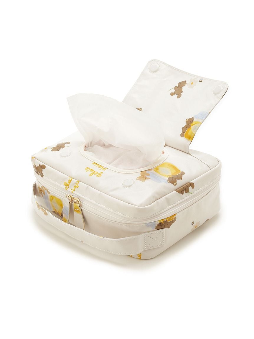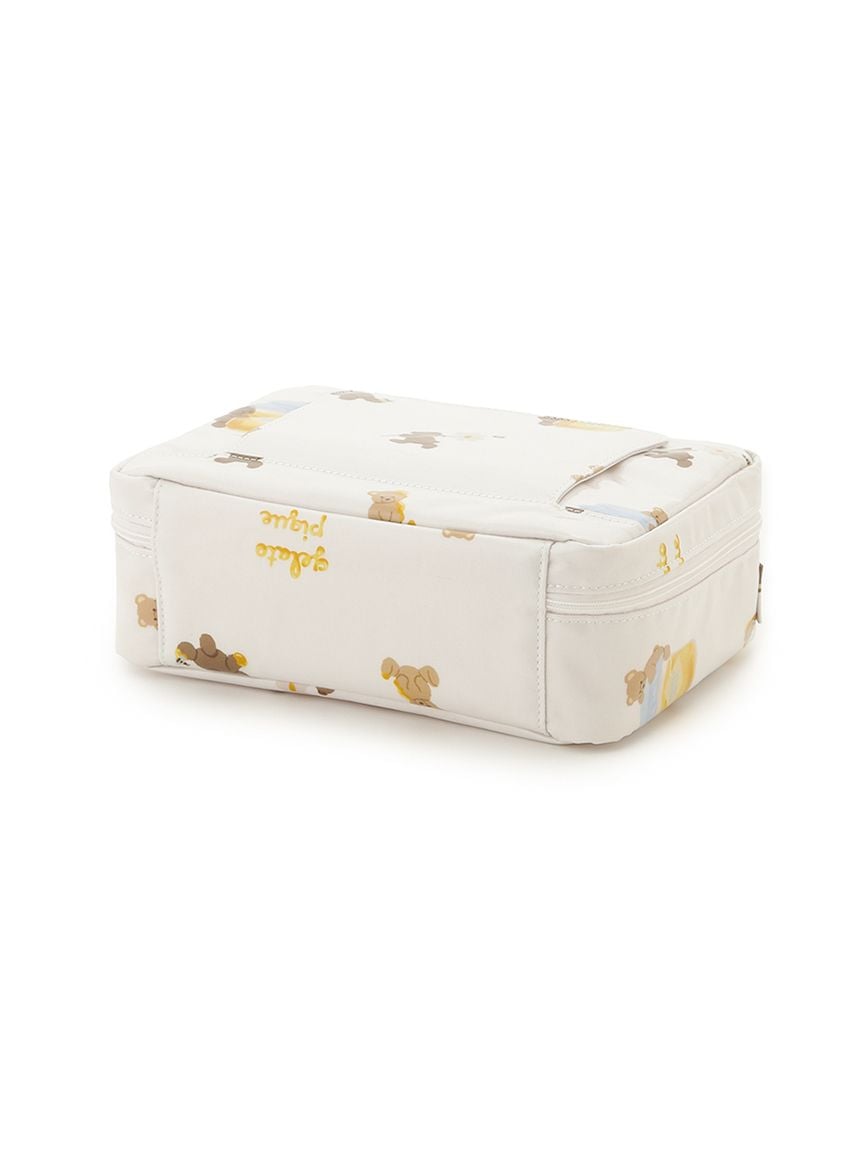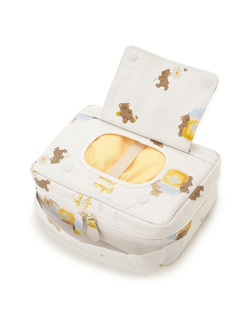 以繪本般筆觸描繪可愛的小熊與蜂蜜,打造蜂蜜小熊媽媽系列小物。雙拉鍊設計方便開合,可容納6片L尺寸尿布的大容量收納包,手提帶設計讓爸爸媽媽都能輕鬆拿取,外出或住宿皆便利。