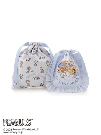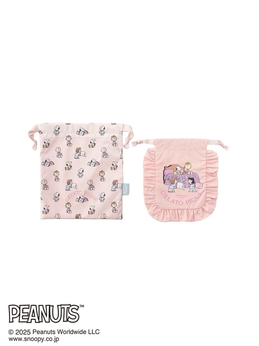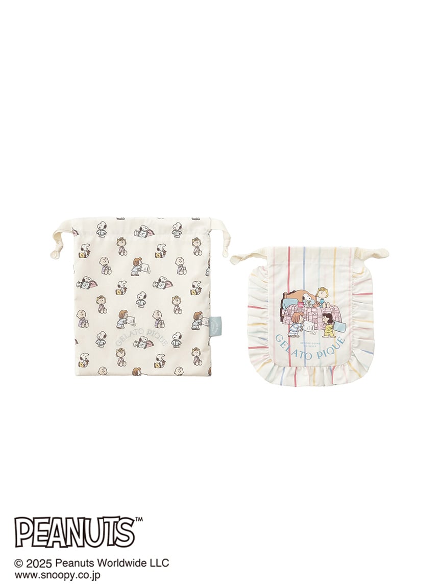 【PEANUTS × gelato pique限定原創插畫˙雙尺寸設計的特別版抽繩束口袋SET】