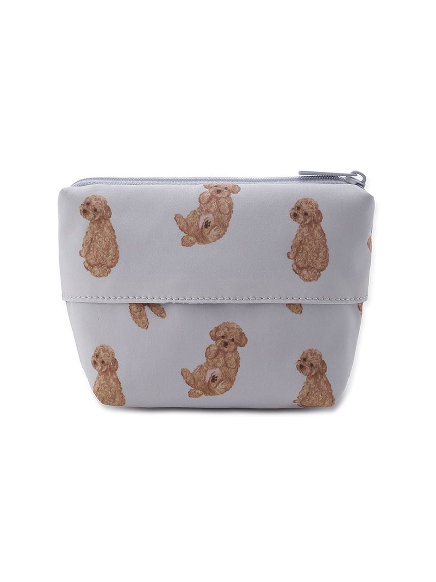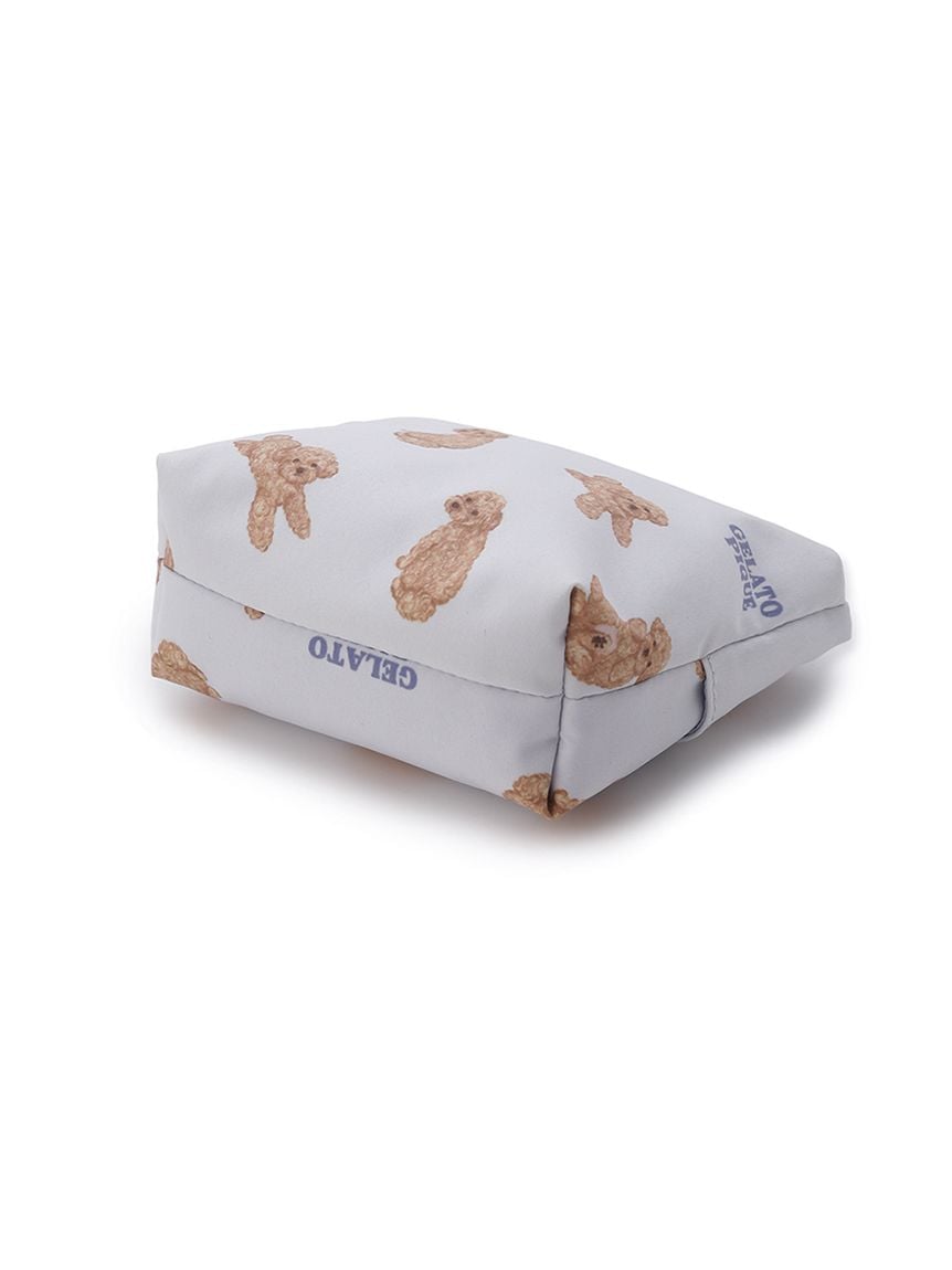 印有翻滾躺下露肚肚或坐著等各種姿勢小狗圖案的狗狗圖案系列面紙收納包。